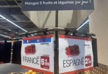 C’était hier dans un hypermarché Auchan. En TG, des fraises. D’un côté, la barquette de fraises (“rondes”) espagnoles…
