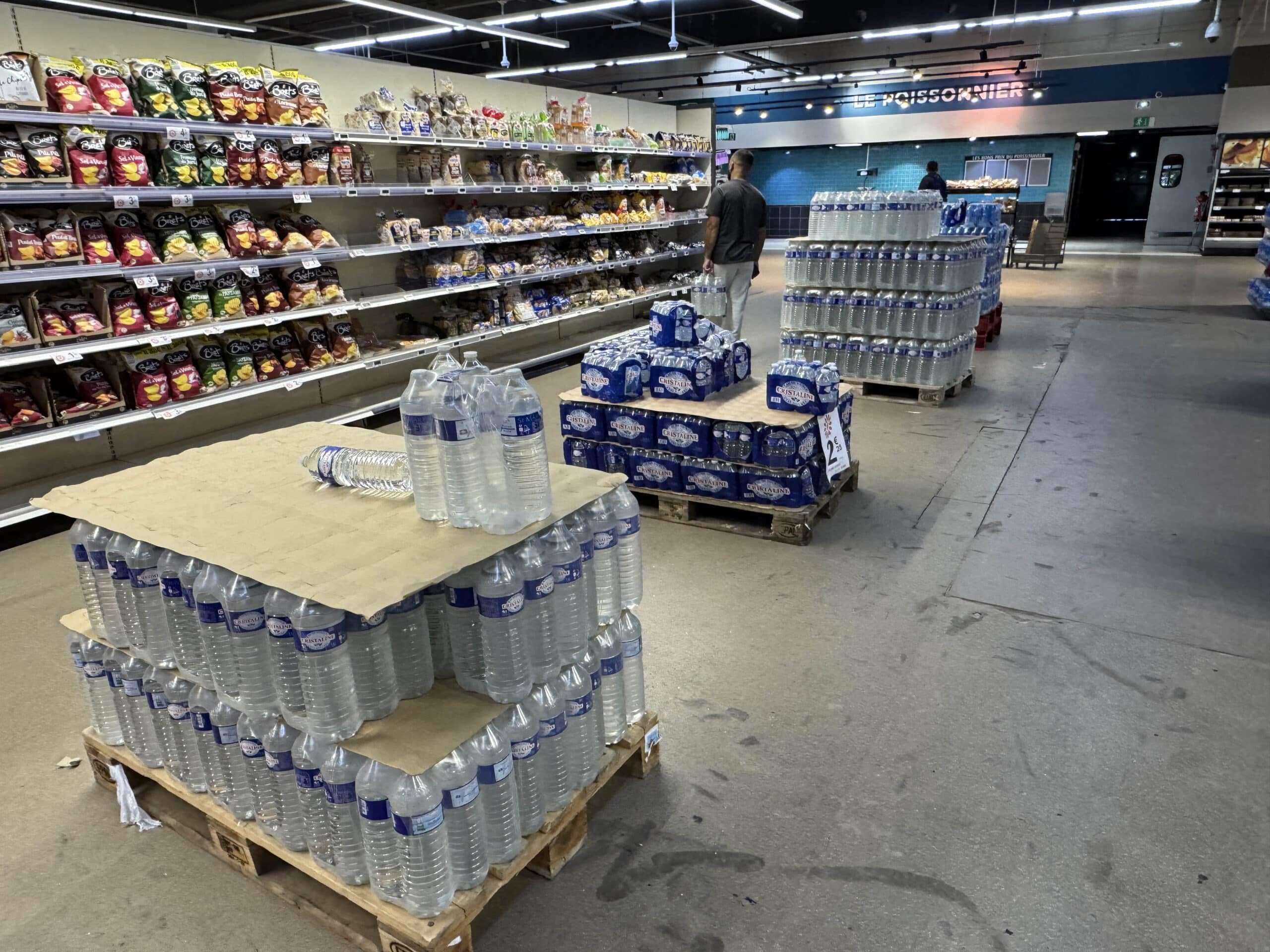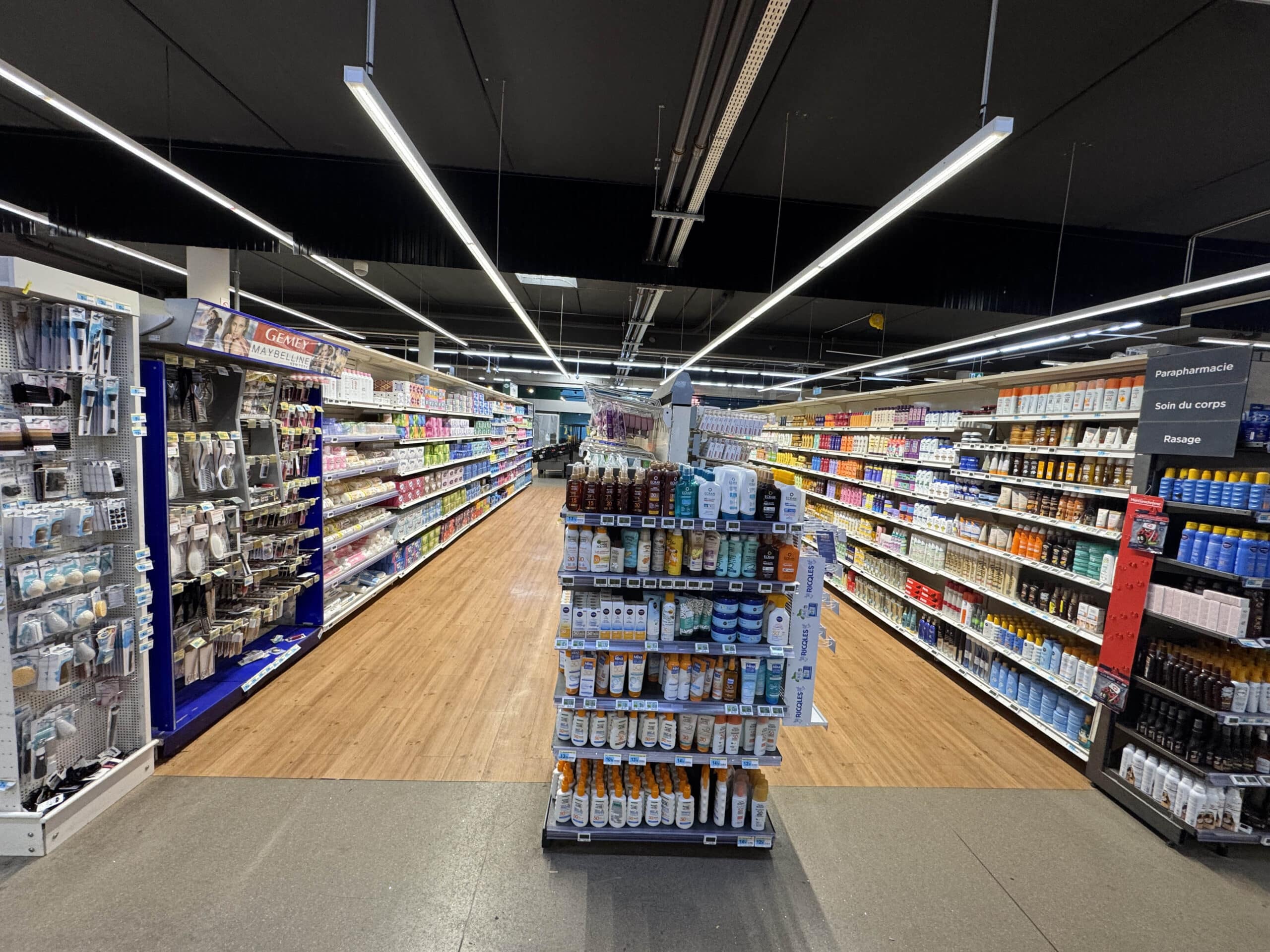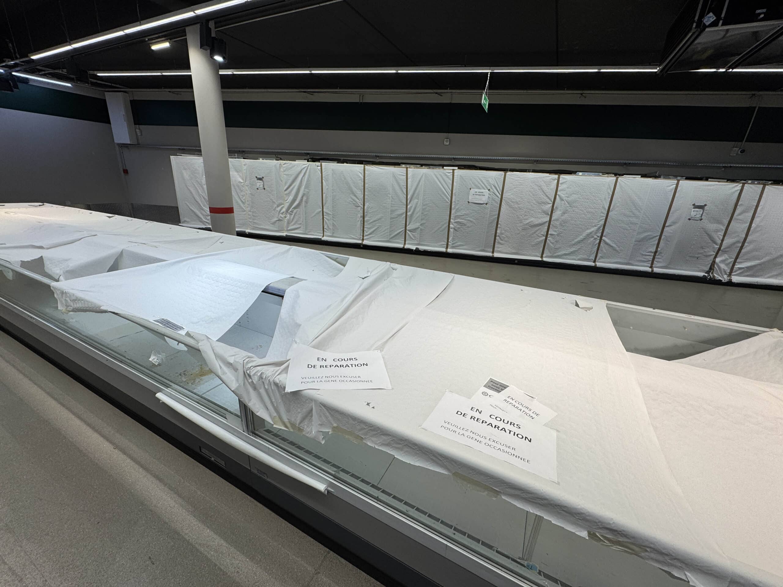 Dés que tu vois le frigo Full Coca 33cl (pas sûr qu’il soit allumé), t’as compris l’ambiance… confirmée par les palettes de Cristaline en fin d’allée centrale. Même le meuble Maggi nous envoie un message de détresse “Non mais, à l’eau!” J’essaye toujours de trouver un truc positif dans toutes les situations, pour rassurer les équipes (et continuer à sourire, un peu): Au moins, vous ne pourrez pas dire que vous n’avez pas assez d’EEG!
