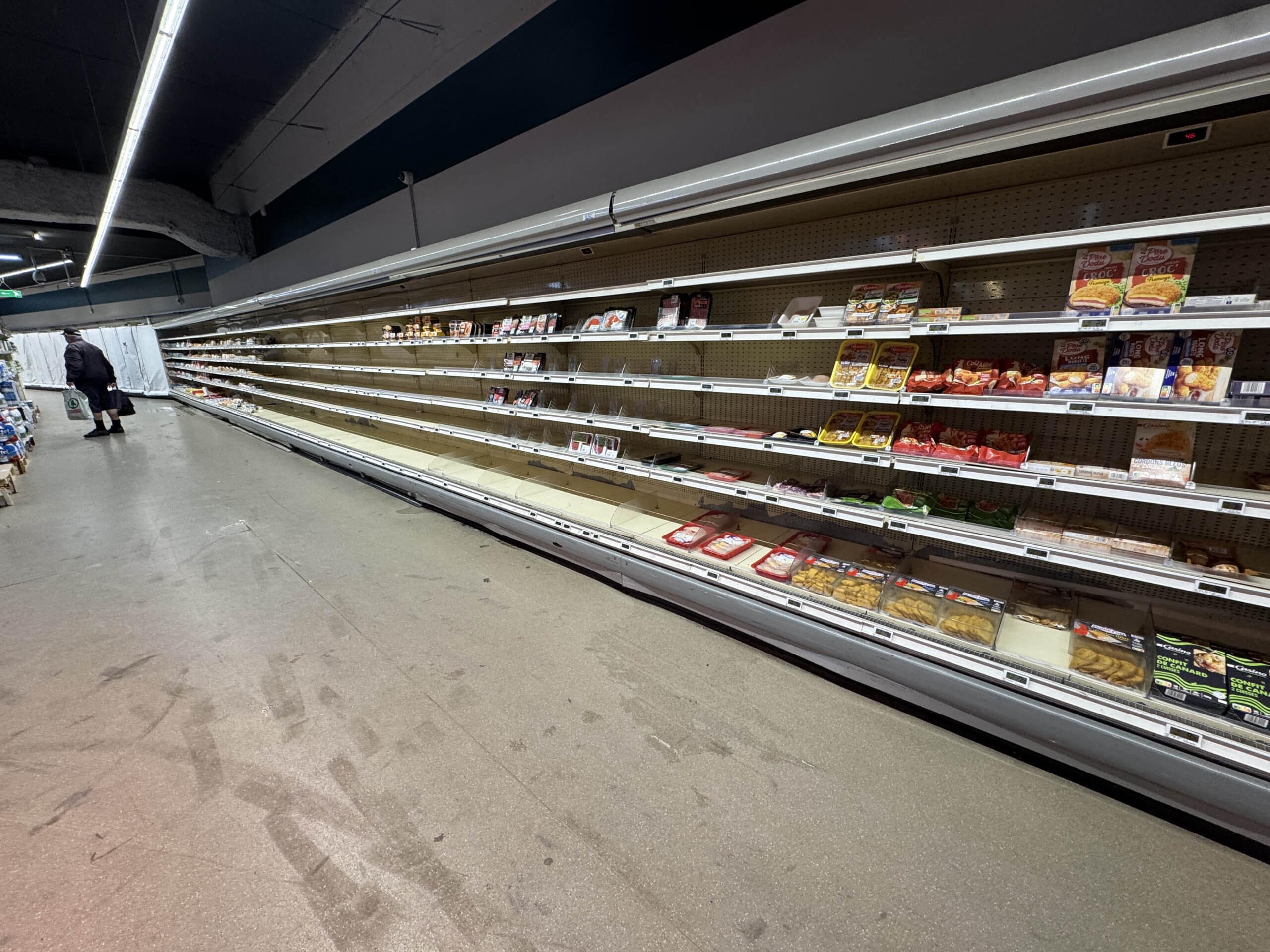 Oh, un Casino, avec un corner Leader Price, des sacs Spar et des allées désertes… Pour bien faire et finir d’emballer la demi-douzaine de clients quotidiens, on imagine un indice prix XXXL à la Franprix avec des petites fulgurances tarifaires vers les sommets improbables de Monoprix…