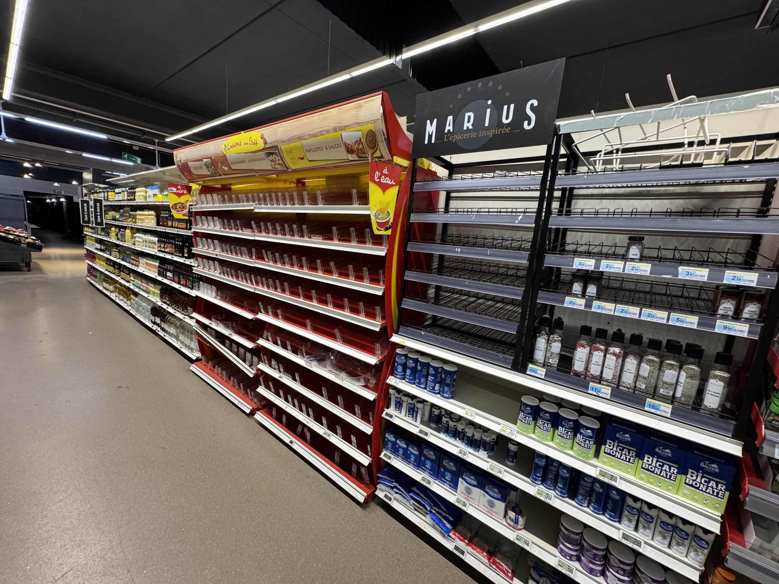Non !, Casino ne s’est pas dessaisi de tous ses supermarchés au profit d’Intermarché, Auchan ou Carrefour. Il en reste une poignée (moins que de doigts sur ma main), notamment à Clamart (92). La visite ne laisse aucun doute : voilà des actifs en sursis, en attente d’un nouveau destin sous une autre enseigne. Une attente évidemment longue pour le personnel comme pour les clients, croisés au gré des allées. Approvisionné par la branche proxi de Casino, le supermarché a perdu en choix. Moins de références, ce sont des facings que l’on étire ! Il n’y a plus de rayons à service, les meubles surgelés sont annoncés en réparation (on ne sait s’il faut y croire vraiment…) et les fournisseurs ne passent visiblement plus. En témoigne le niveau de remplissage des meubles qui sont généralement gérés par les commerciaux, par exemple les épices. Bref, la vie (commerciale) ne tient plus qu’à un fil. Mais comme c’est aussi l’époque (commerciale), ça mérite un arrêt.