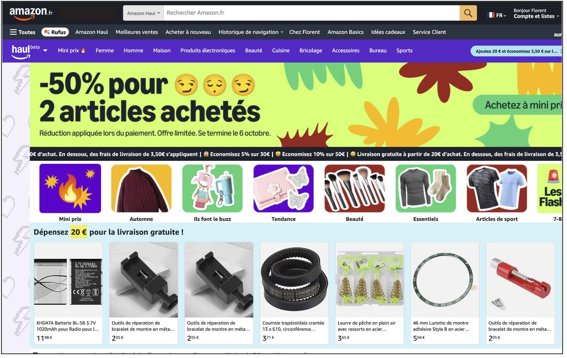 Sérieusement bousculé par les Chinois Shein et Temu qui lui confisquent sa position de site de référence pour des achats low cost, Amazon réagit. Sa réponse s’appelle Haul, une boutique (en version Béta) tout juste disponible en France, dont la vocation est de concentrer les articles chinois à bas prix.