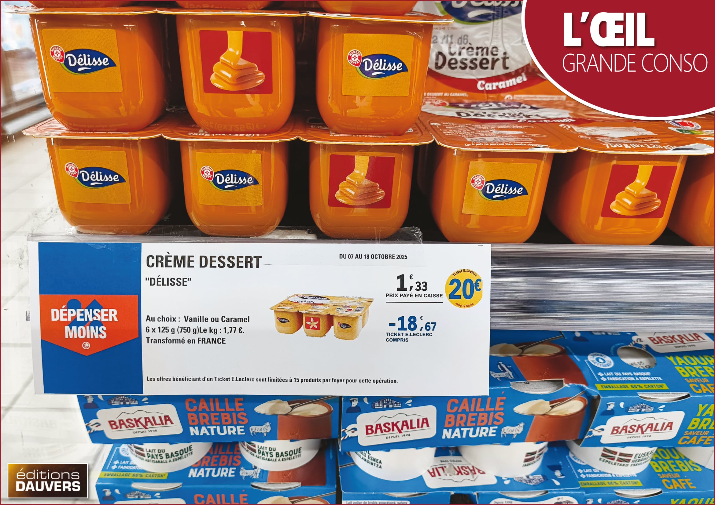 L’erreur est humaine, dit-on. Et c’est vrai ! Donc pardonnable. Ce qui l’est moins, c’est lorsque les erreurs s’enchaînent. Car elles témoignent d’autre chose. D’une forme de désintérêt. Ce cas, observé hier dans un hyper Leclerc pour le démarrage de la promo de la semaine, est édifiant : 1,33 € les 6 crèmes dessert MDD sur lesquelles s’applique une remise différée en “ticket Leclerc”. Montant de la remise : 20 €. Vous savez compter, moi aussi : 1,33 € payé en caisse, 20 € de ticket Leclerc, c’est un “gain” de 18,67 € pour le client par unité achetée. Et comme la limite est fixée à 15 produits, y’a moyen de “se faire” 280 €. Belle… promo !