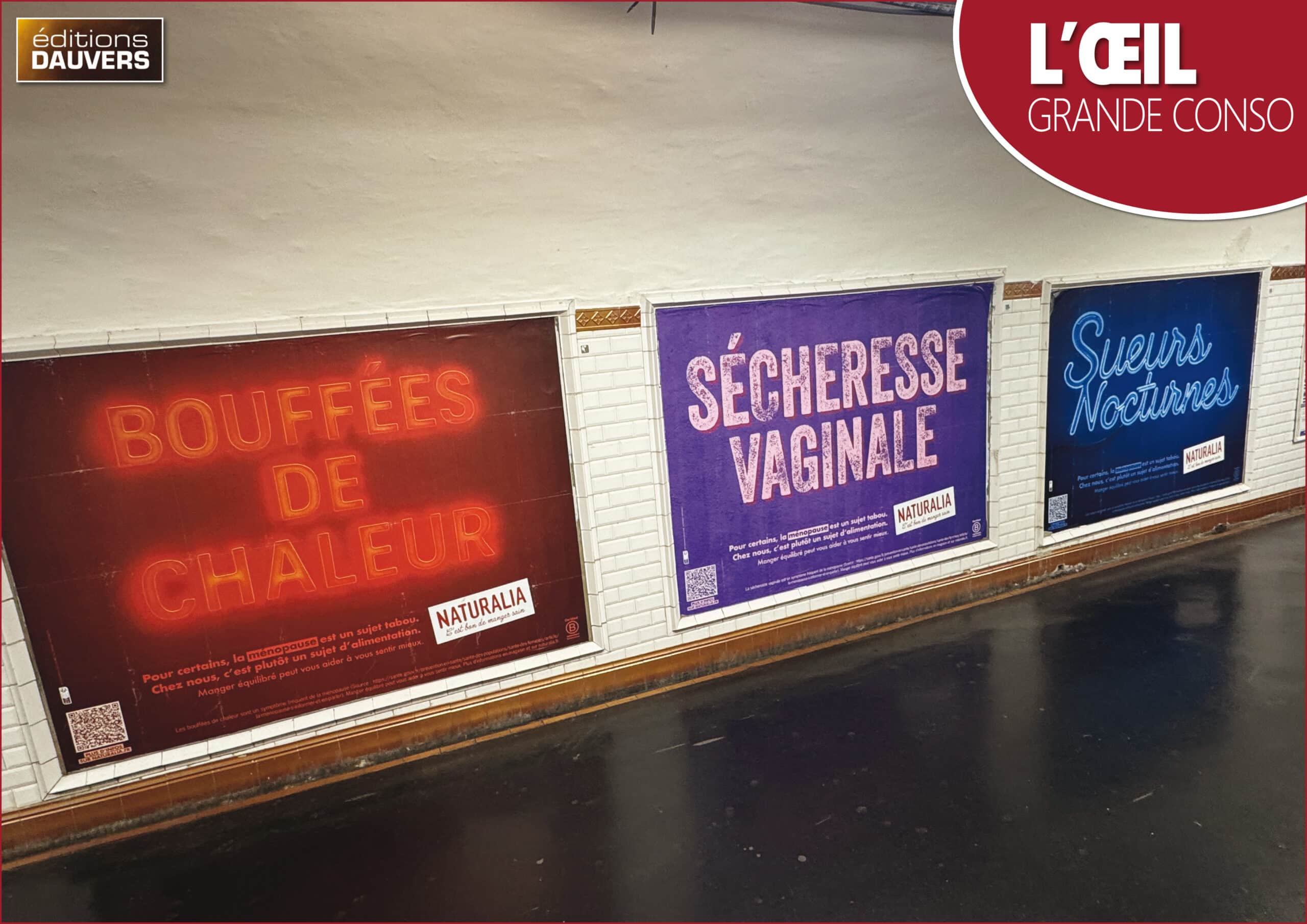 ⏰ 6h du mat’ dans le métro à Paris, en route pour la radio 📻 … “Bouffées de chaleur”, “sécheresse vaginale”, “sueurs nocturnes”. J’avoue, j’étais pas prêt. Le sujet (la ménopause) est évidemment sérieux. Et Naturalia le raccroche à sa proposition commerciale : “Pour certains, la ménopause est un sujet tabou. Chez nous, c’est plutôt un sujet d’alimentation. Manger équilibré peut vous aider à vous sentir mieux”. Audacieux ! Mais ça a le mérite de trancher avec les pubs “Je suis le moins cher !”