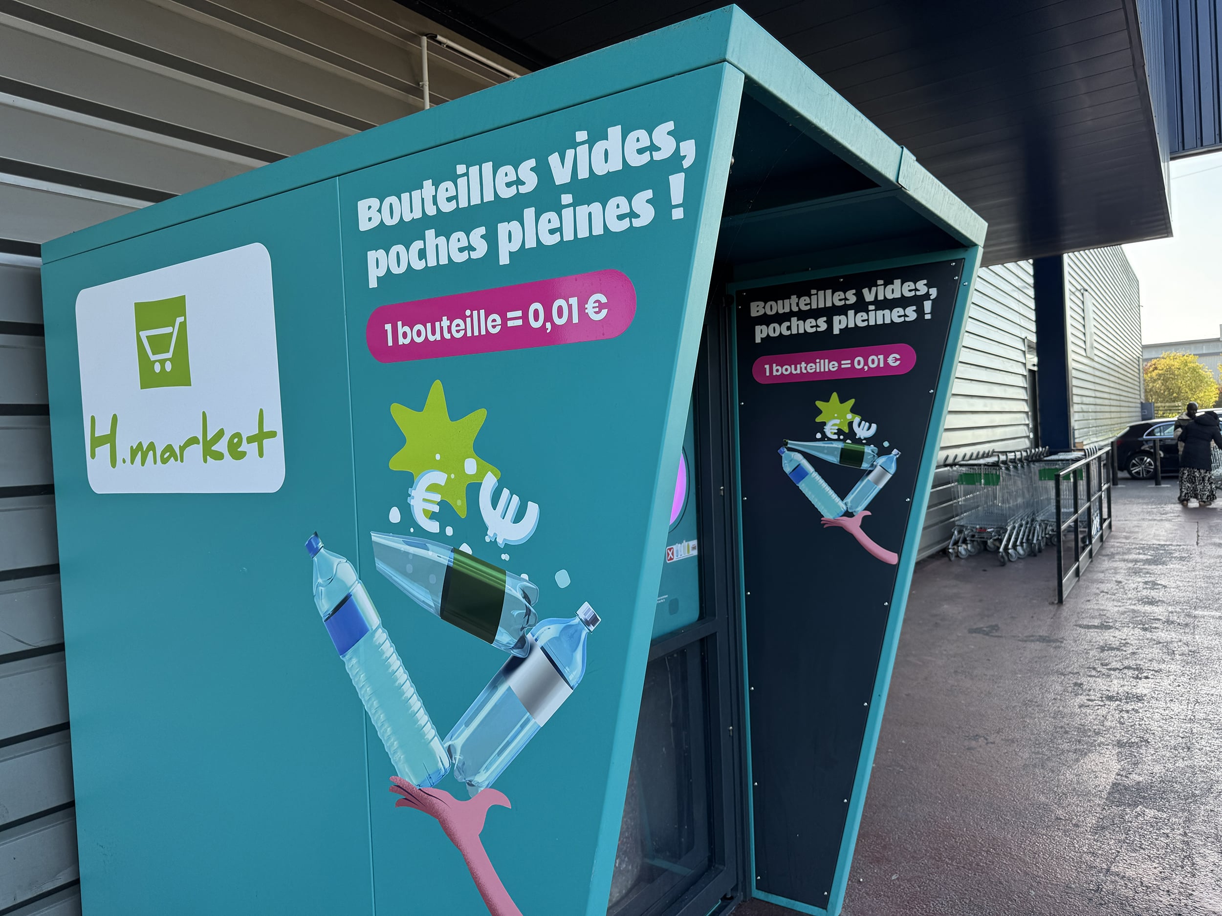 Sur le parking. « Bouteilles vides, poches pleines ». A 1 centime l’unité, va quand même en falloir des bouteilles (pour remplir les poches) 🤣.