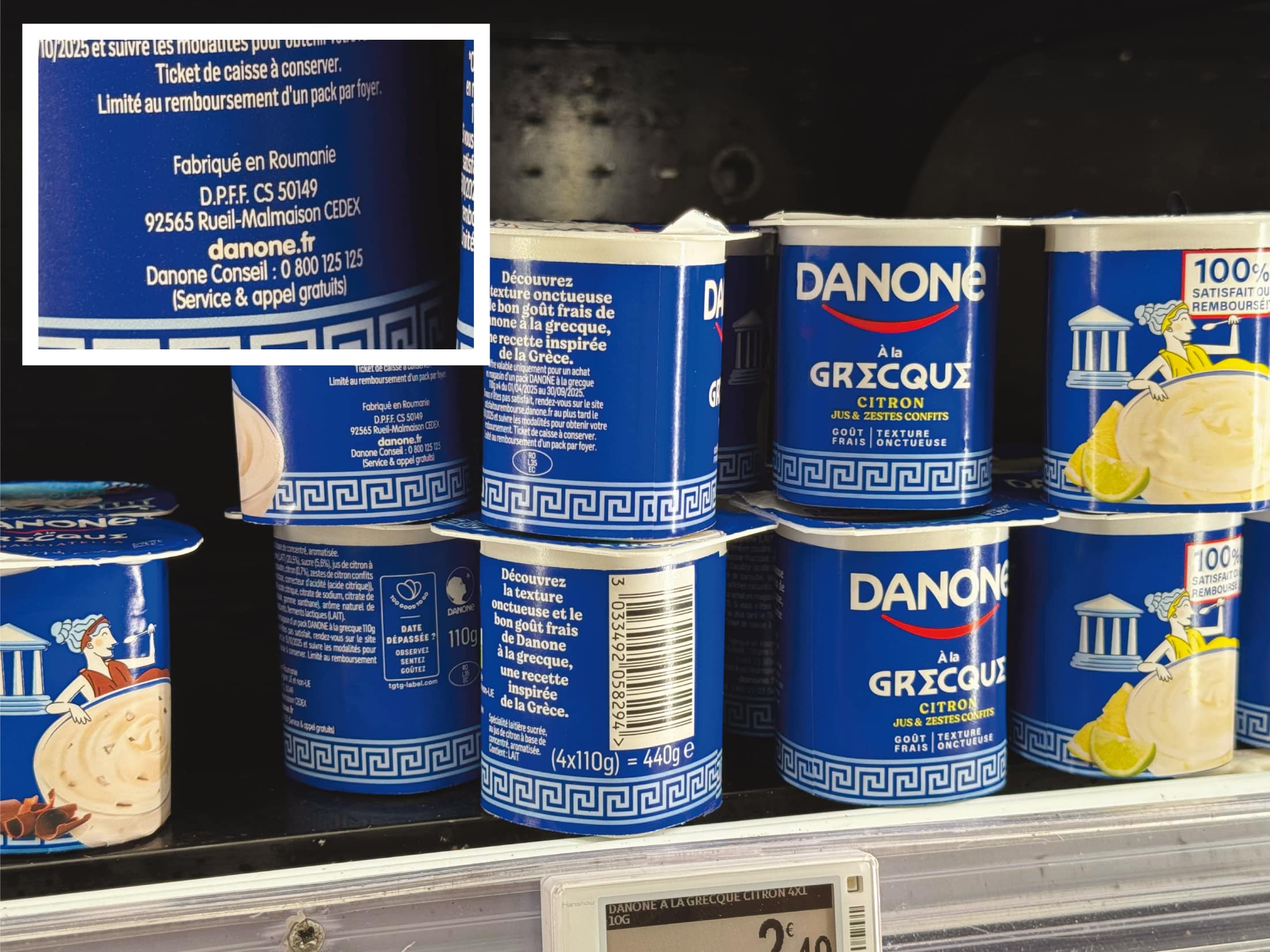 Chez U. Il y avait le Skyr islandais fabriqué en Slovénie (Siggi’s, Lactalis), voici donc le yaourt à la grecque fabriqué en Roumanie (Danone). Le monde merveilleux de l’industrie agro-alimentaire.