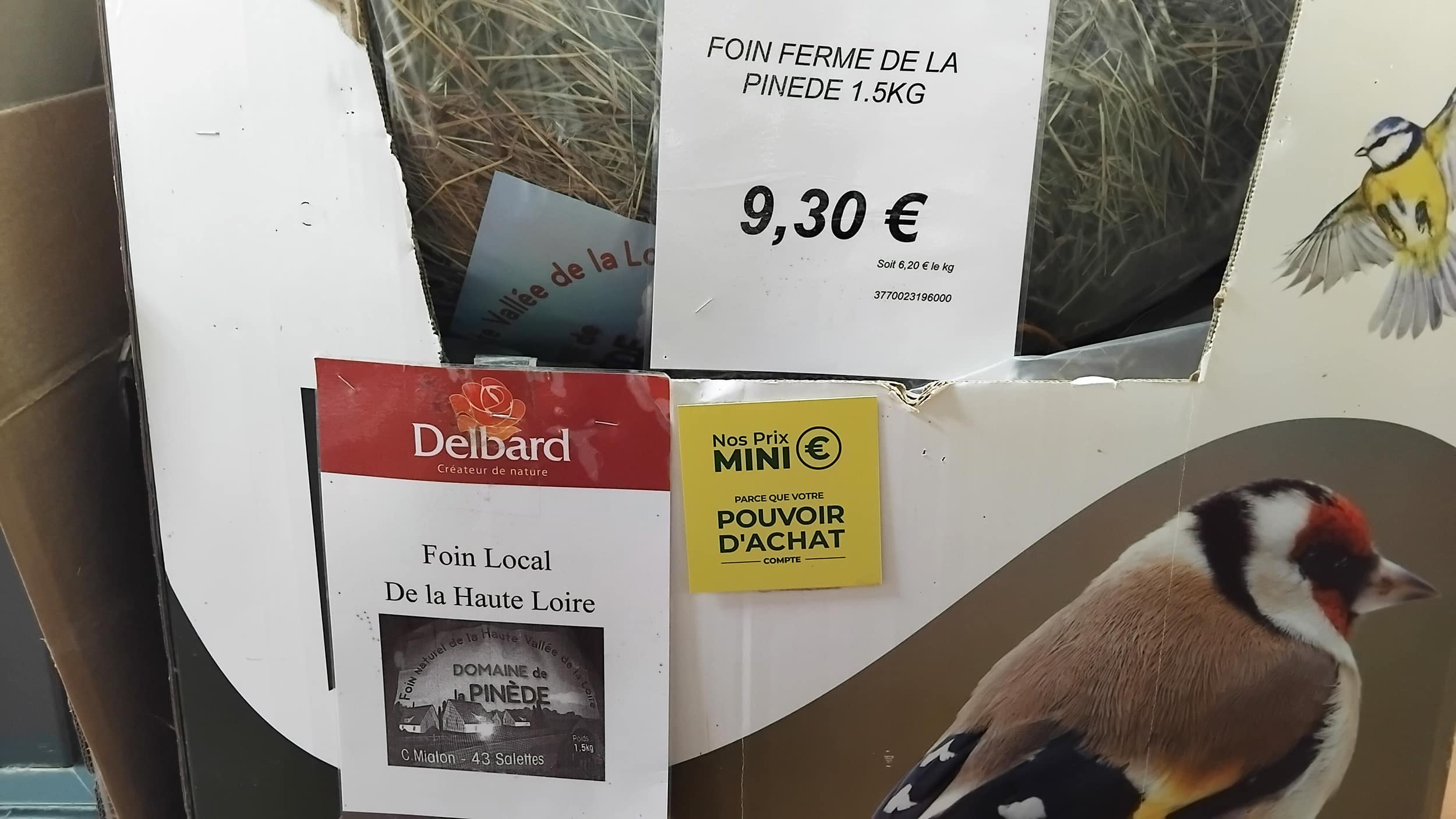 Jardinerie Delbard. 9,30 € le kilo et demi de foin !!! Du « mini » qu’ils disent “parce que votre pouvoir d’achat compte”… A ce prix-là, sont pas près d’être sur la paille chez Delbard ! Vous lavez encore ? Sinon, j’avais aussi : « Delbard se fait du blé avec le foin ».