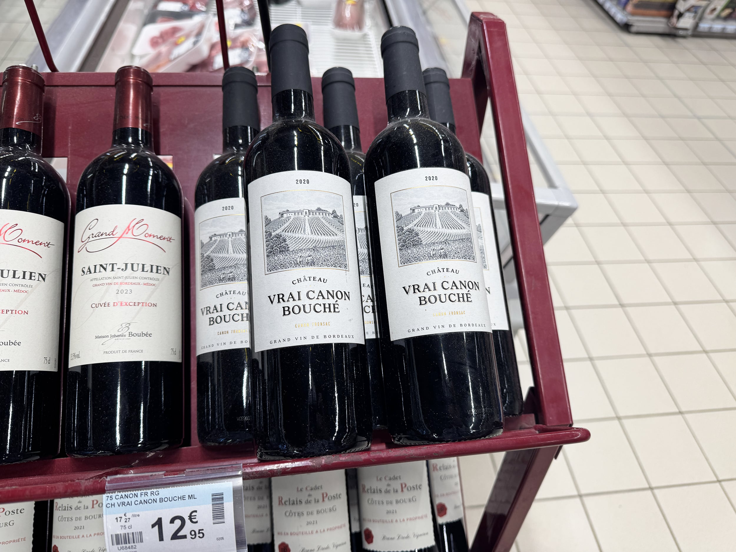 Rayon vins. « Château Vrai Canon Bouché ». « Bouché », pas bouchonné. Y’a de ces noms…