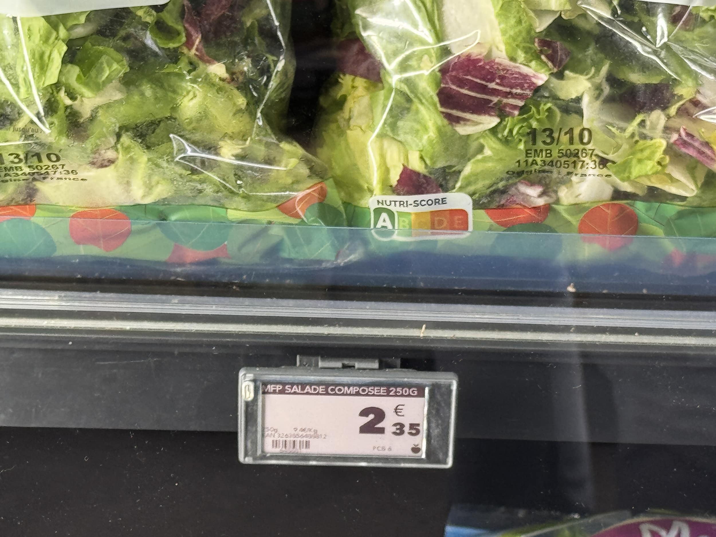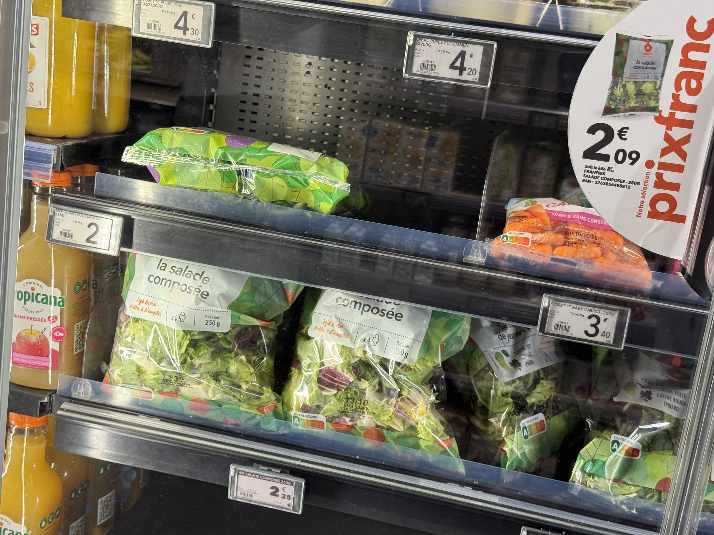 Le prix « franc » chez Franprix (est un prix qui vieillit mal). 2,09 € sur la poignée de porte, 2,35 € sur l’étiquette électronique. Ne jamais faire cohabiter affichage prix papier et électronique, épisode 12 728.
