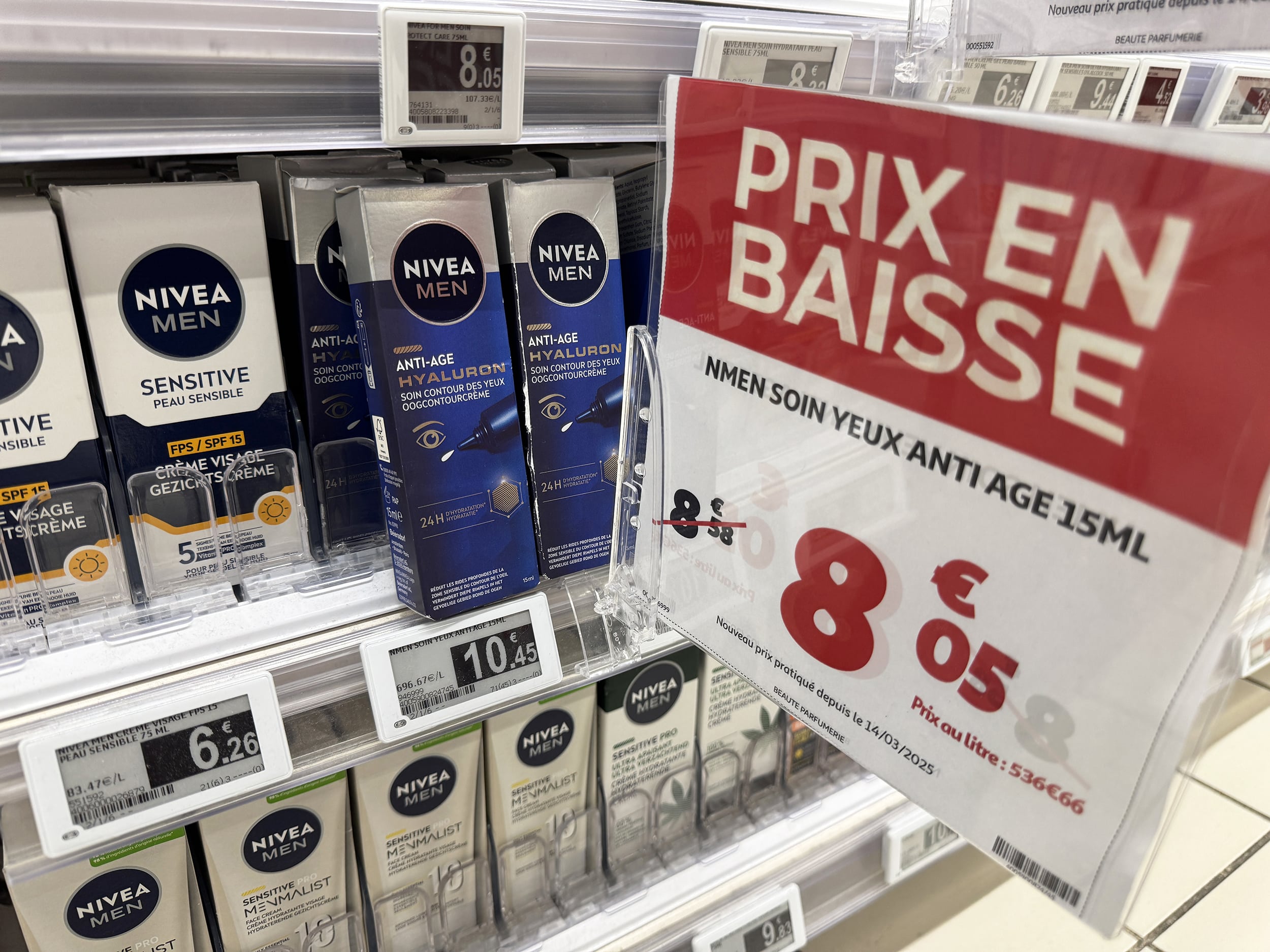 Nivea Men contour des yeux ? 8,05 € sur l’affichette, 10,45 € sur l’étiquette électronique. Par acquis de conscience, je vérifie.