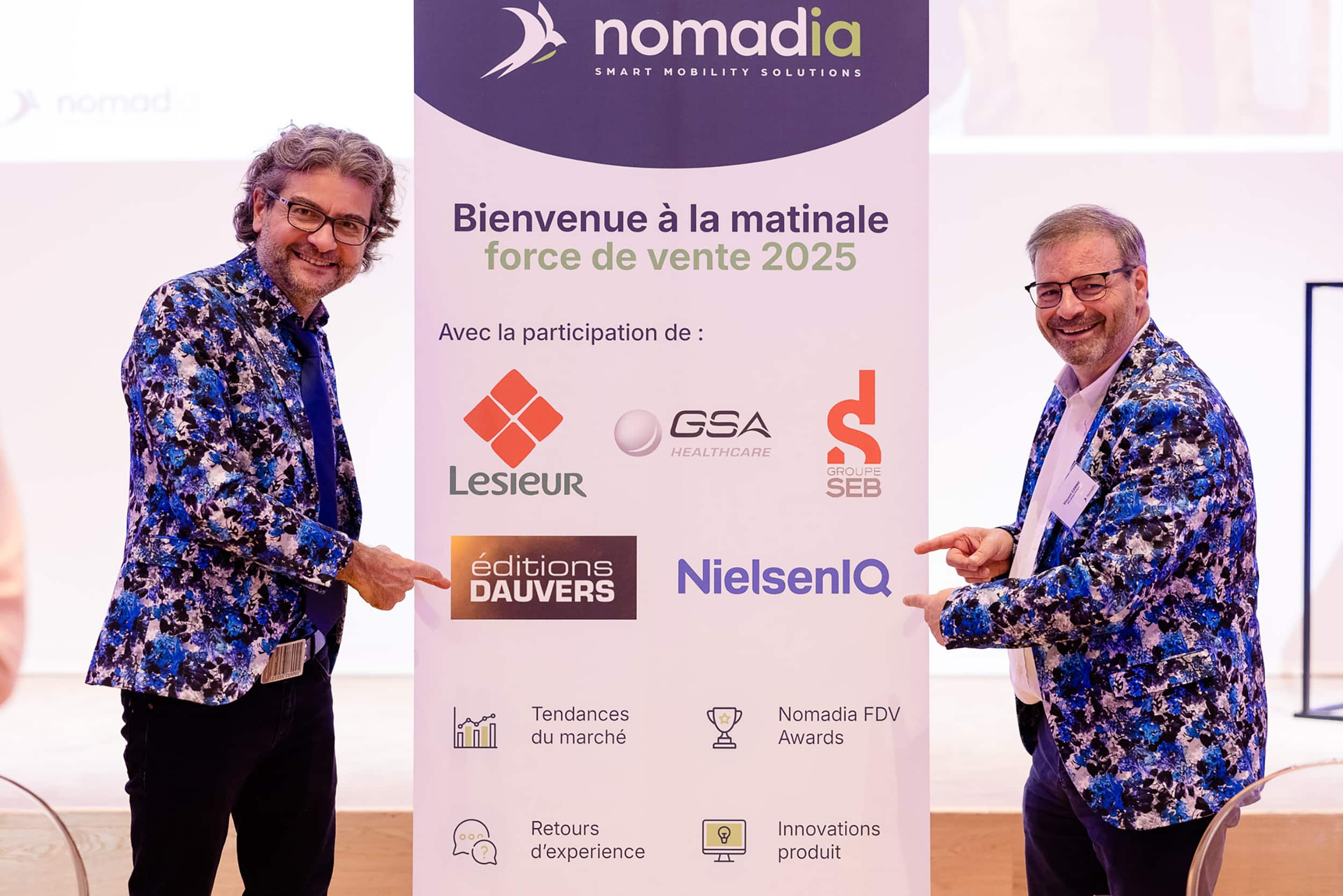 À la « Matinale Nomadia ». Je sens bien que mon influence dans le retail s’accroît 🤣. A droite, Vincent Cornu, le M. Distribution de NielsenIQ.