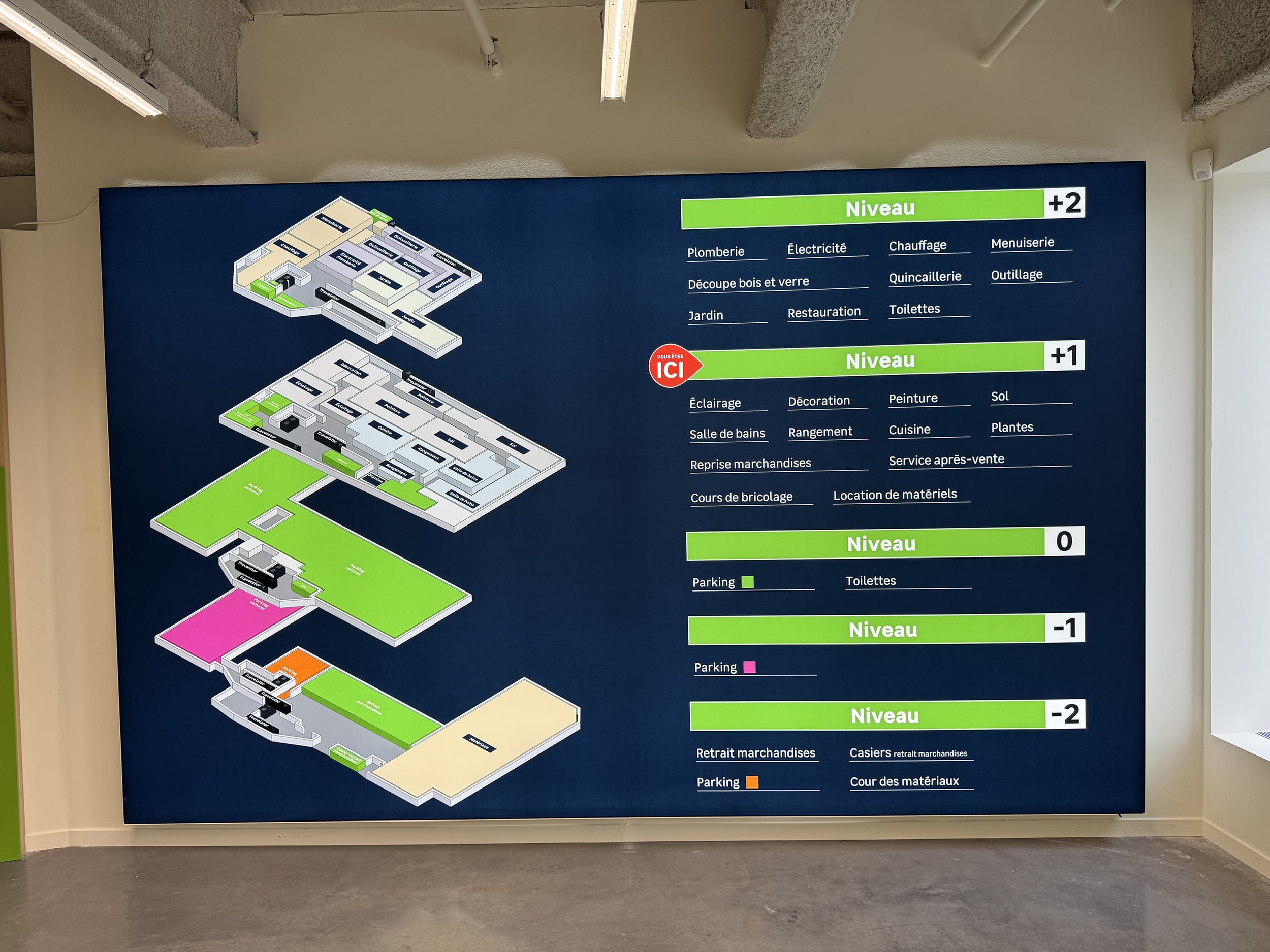 De fait, ce nouveau paquebot Leroy Merlin (jusque dans la forme des extérieurs) a 2 handicaps structurels : les accès (Mon Dieu, comment a-t-on pu imaginer ça… ?) et une exploitation sur 5 niveaux (dont 2 sont marchands), ce qui n’est jamais un atout en termes d’expérience.