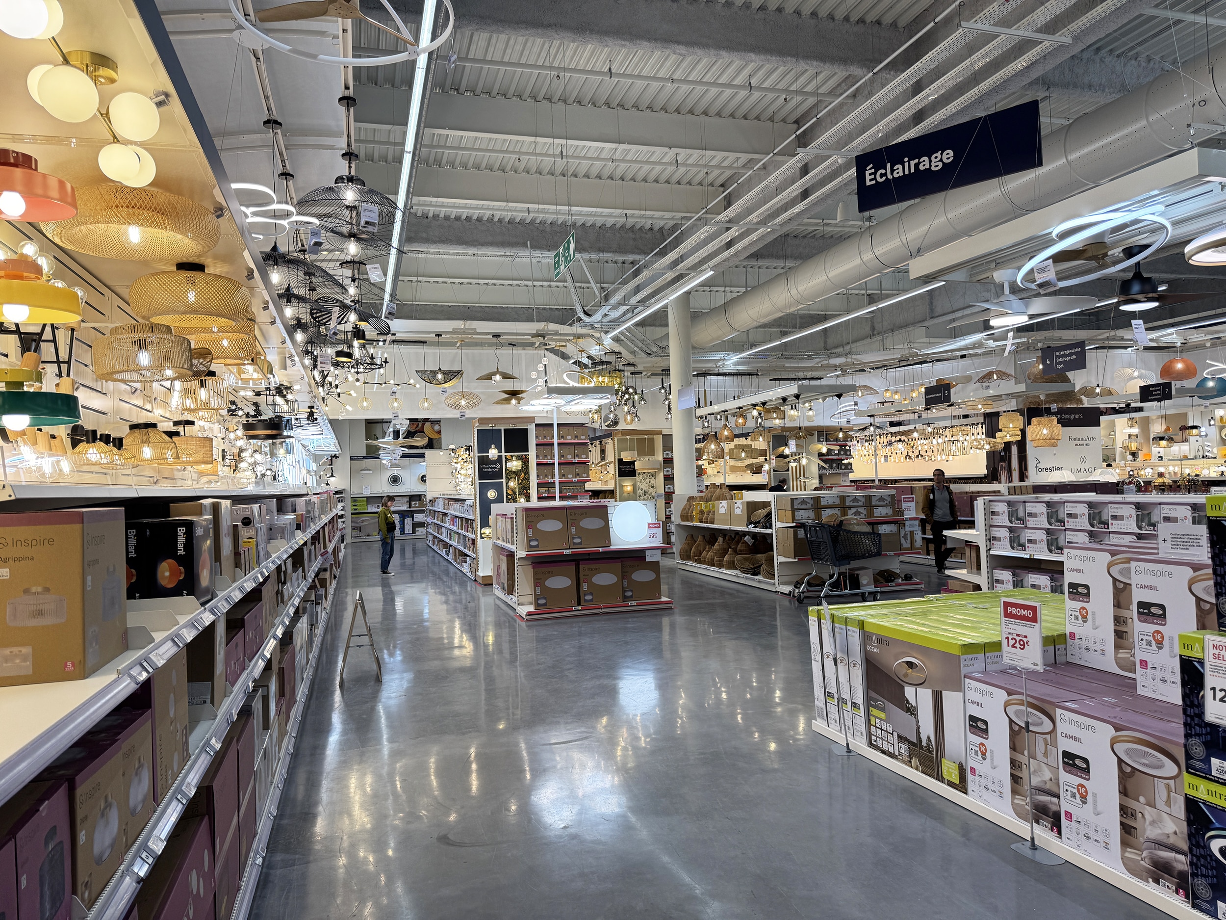 C’est le dernier-né de Leroy Merlin : un transfert agrandissement (de 14 à 15 000 m2) à Villeneuve d’Ascq, dans la périphérie de Lille. 50 millions investis et la mission d’incarner ce que l’enseigne des Mulliez sait faire de mieux. Évidemment, avec autant de “prétention”, ça peut provoquer une grille de lecture exigeante pour le visiteur. Et c’est le cas des commentaires souvent déçus que j’ai pu lire ou entendre.