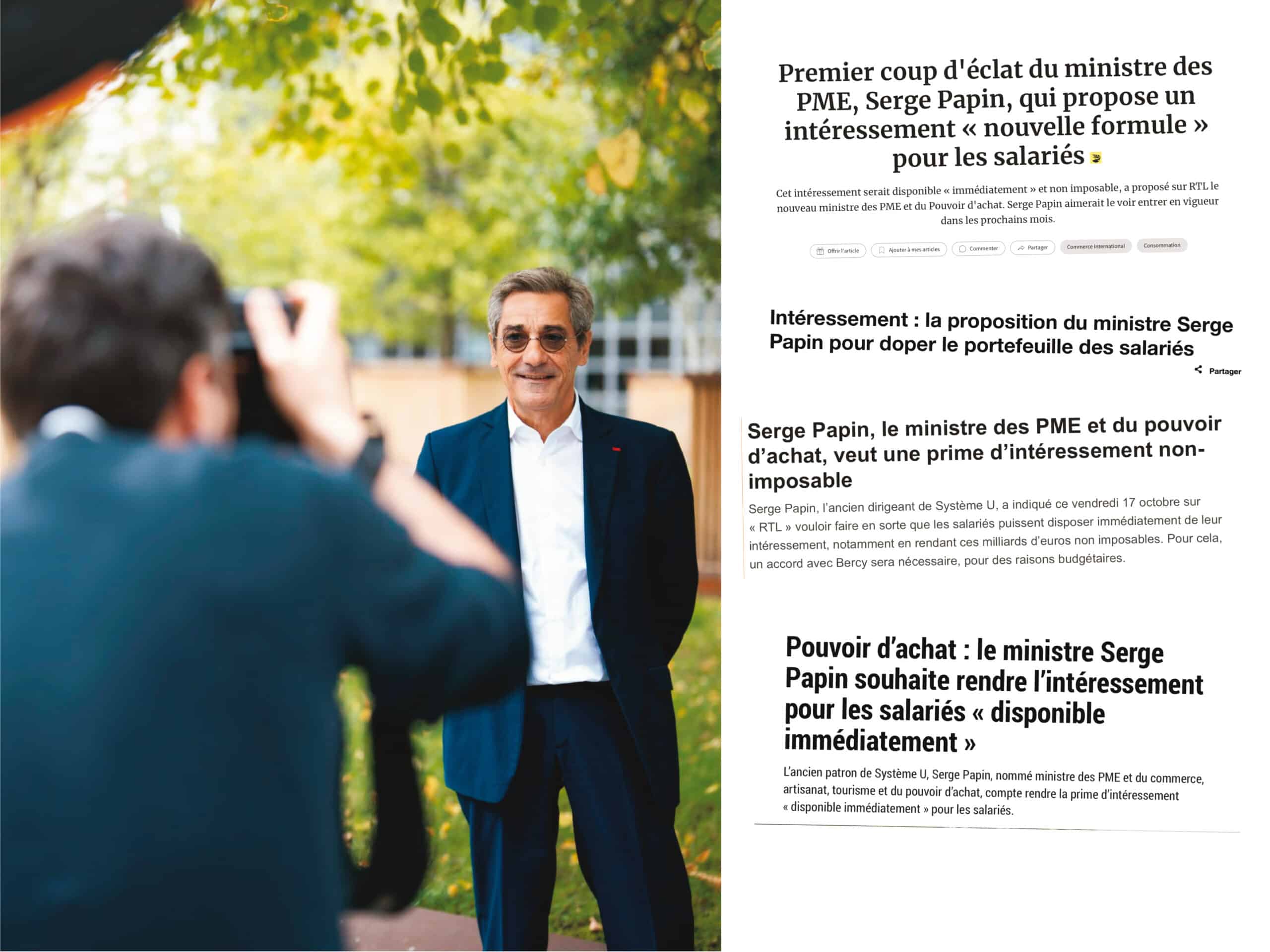 Si l’action publique se mesure en unité de bruit médiatique, Serge Papin, nouveau ministre du commerce (je simplifie l’intitulé) a réussi son atterrissage politique ! L’ex-patron des U a déjà 2 “grandes” interviews au compteur : sur RTL vendredi matin (sans doute parce qu’on est bien LA radio de la conso 💪) et La Tribune Dimanche aujourd’hui (ici). Surtout, il a créé le débat vendredi avec la proposition de rendre immédiatement disponible et non fiscalisé l’intéressement. Chaînes infos et JT, la proposition Papin était partout. Signe que le Ministre Papin a “imprimé” dès sa première semaine. Ce qui est rare pour un ministre “technique”.