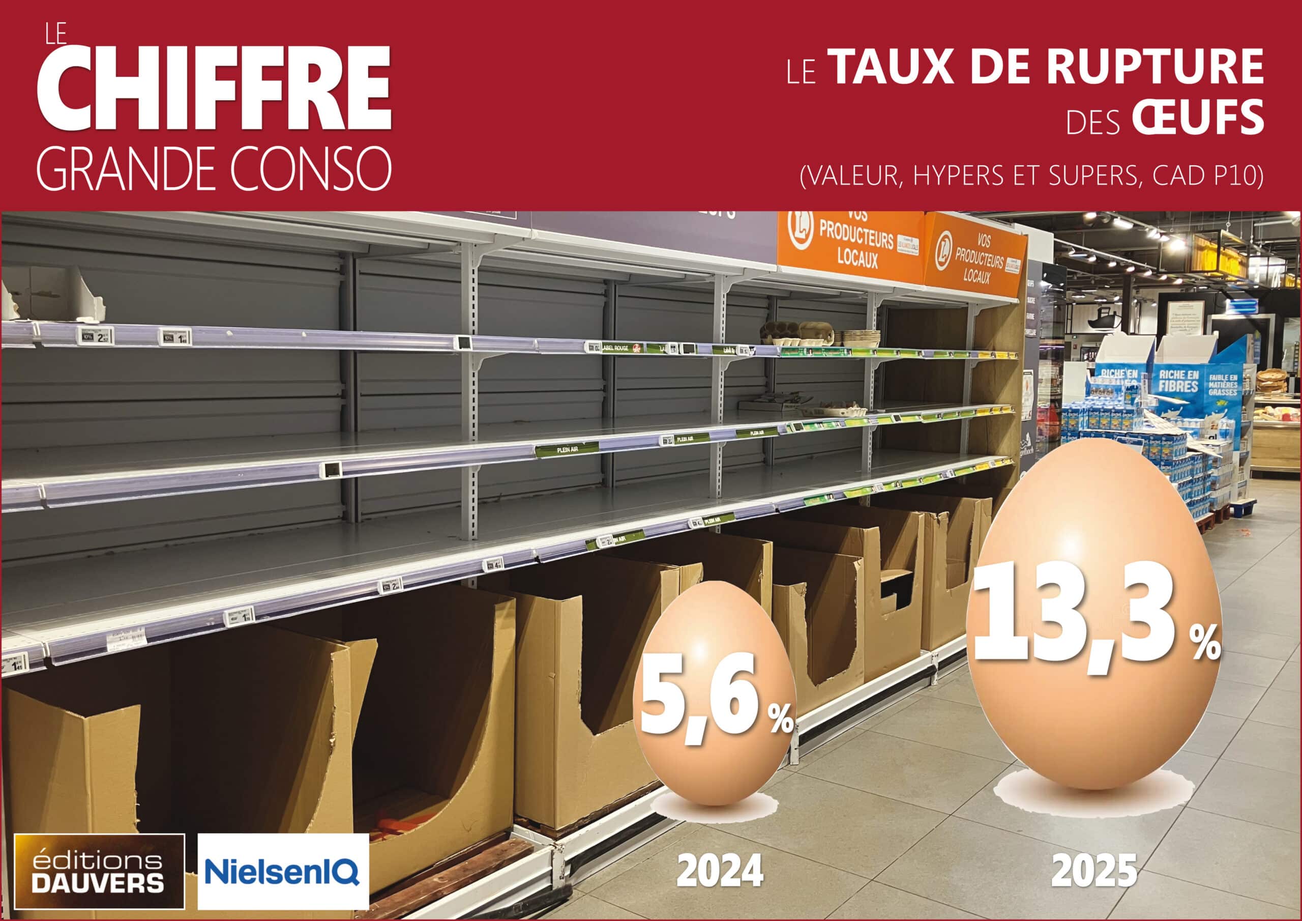 Un chiffre qui claque… Le taux de ruptures au rayon œufs : 13,3 % cette année selon NielsenIQ. Et, surtout, un (plus que) doublement vs l’an dernier, un niveau déjà élevé pour un produit de grande conso. En cause : la production qui ne suit pas l’emballement de la conso. Encore + 8 % cette année, sur un historique déjà favorable. Le risque est connu : laisser des rayons vides ou céder aux importateurs qui proposent des camions à la provenance lointaine (Pologne ou Ukraine comme j’avais pu le montrer ici). La solution aussi (est connue) : ne pas freiner les velléités de création de nouveaux bâtiments, comme c’est encore le cas aujourd’hui. Voilà pourquoi, je suis un fervent défenseur de la fameuse Loi Duplomb. Au nom de la souveraineté alimentaire.