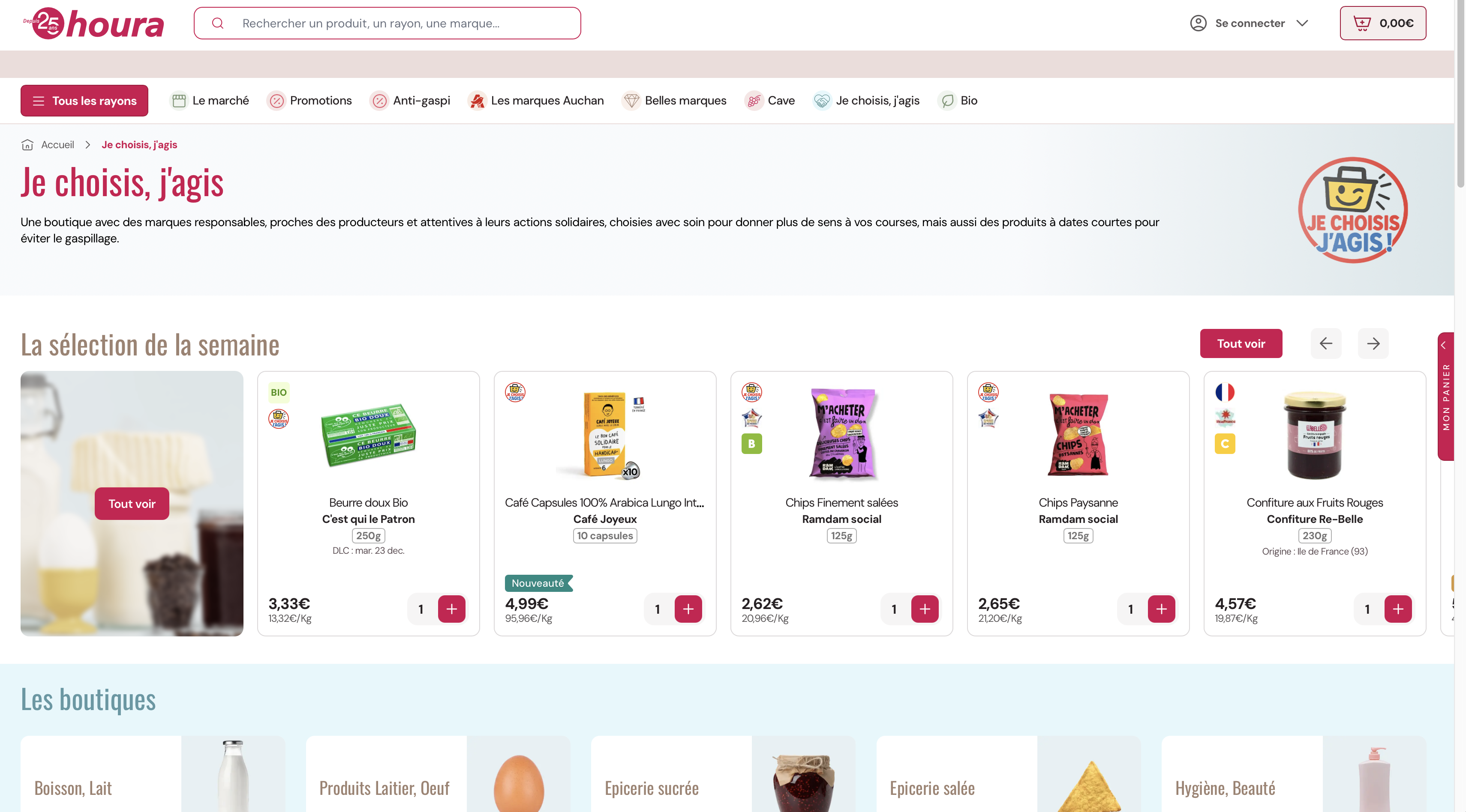 Un premier “update” sur l’initiative Je choisis / j’agis que je porte depuis quelques mois avant une “grosse” et belle annonce la semaine prochaine… Le site de LAD Houra (le pionnier des cybermarchés) a donc rejoint la démarche qui vise (au minimum) à identifier ou (au mieux) à mettre en avant les marques à impact présentes dans les assortiments (900.care, Ramdam, C’est qui le patron, Inga, etc). Que l’impact soit “pour la société” ou “pour la planète”. Objectif : aider les clients qui le veulent / le peuvent à avoir un impact via leur consommation.