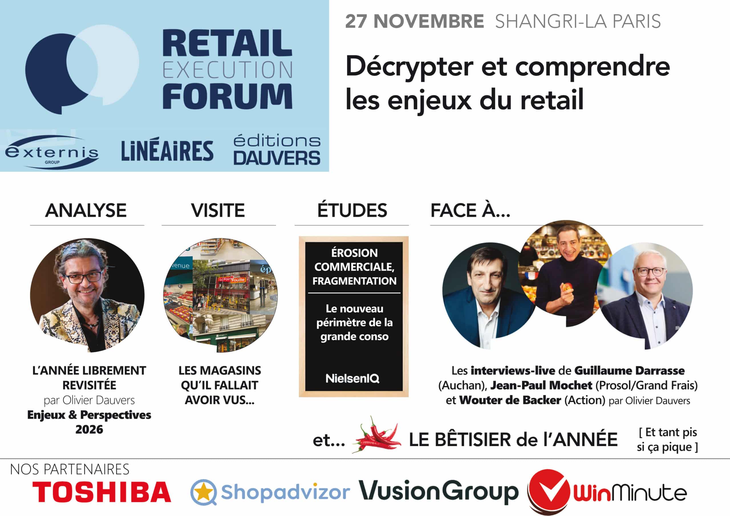 NB : pour comprendre la “mécanique” Grand Frais et sa contribution à la fragmentation de la conso, RDV le 27 novembre à Paris pour le RETAIL FORUM. J’y interrogerai en live Jean-Paul Mochet (entre autres). Programme complet ici >>. Et comme je suis (très) serein sur le niveau éditorial de cet après-midi, c’est satisfait ou remboursé. Vous pouvez me croire, on rigole pas avec le PENSER-CLIENT chez Dauvers 😉