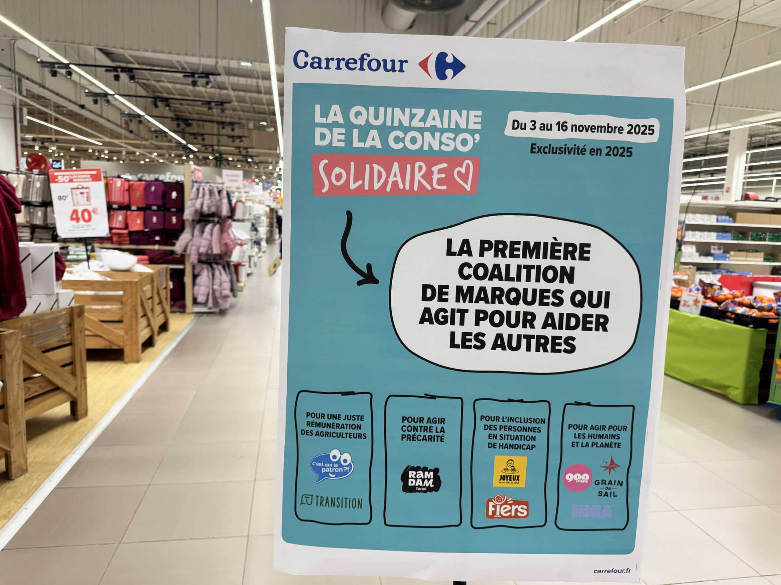 Dans ce cas, Olivier, remercie Carrefour pour l’invisibilité de “Je choisis / J’agis” qui est totalement annihilé. C’est un hommage, au pire, car l’enseigne utilise les mots Choisis et Agis… Mais c’est tout!
