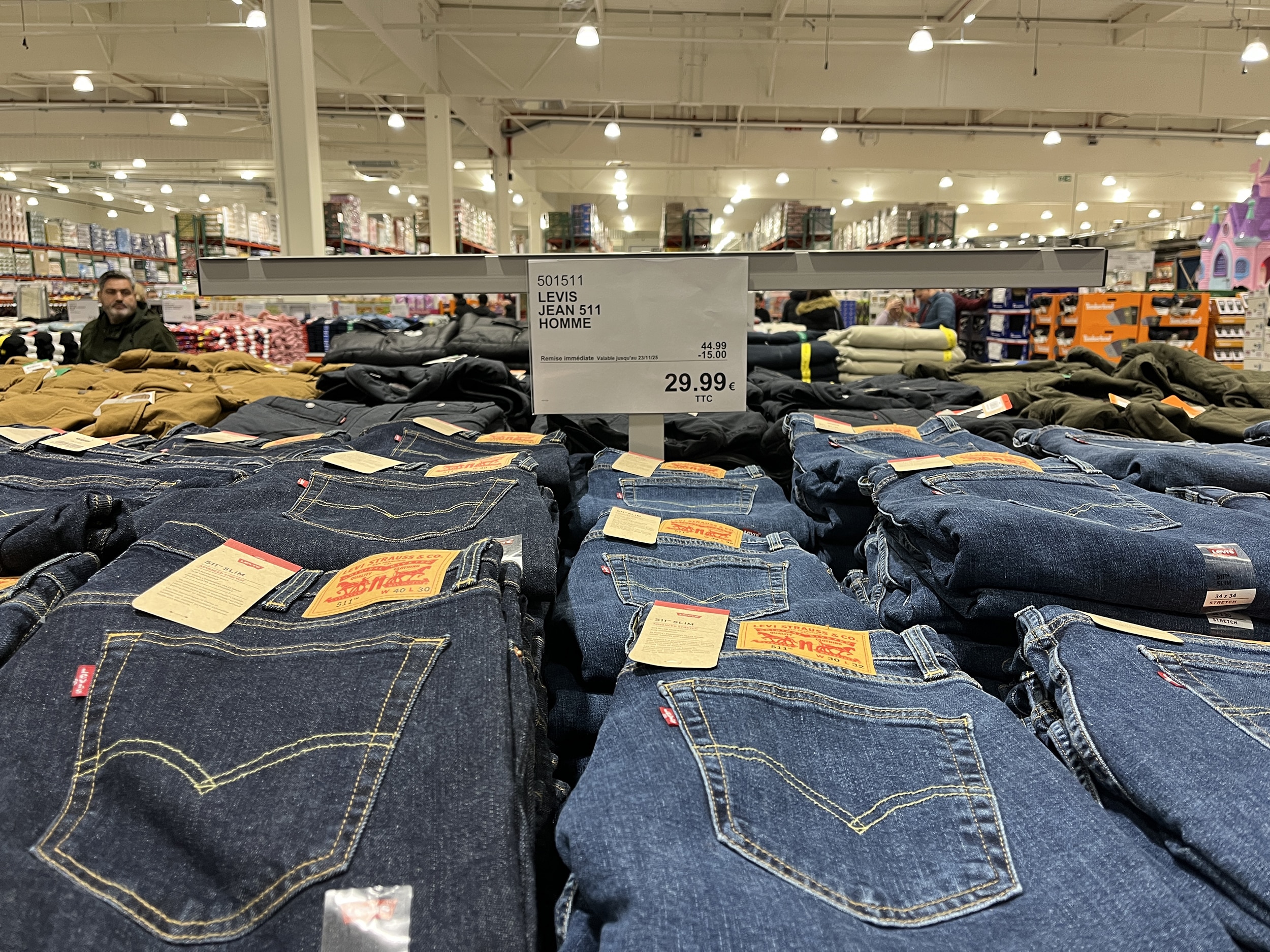 Jour d’ouverture et déjà du prix barré? Levi’s 44€ – 15€ = 29€! C’est généreux!