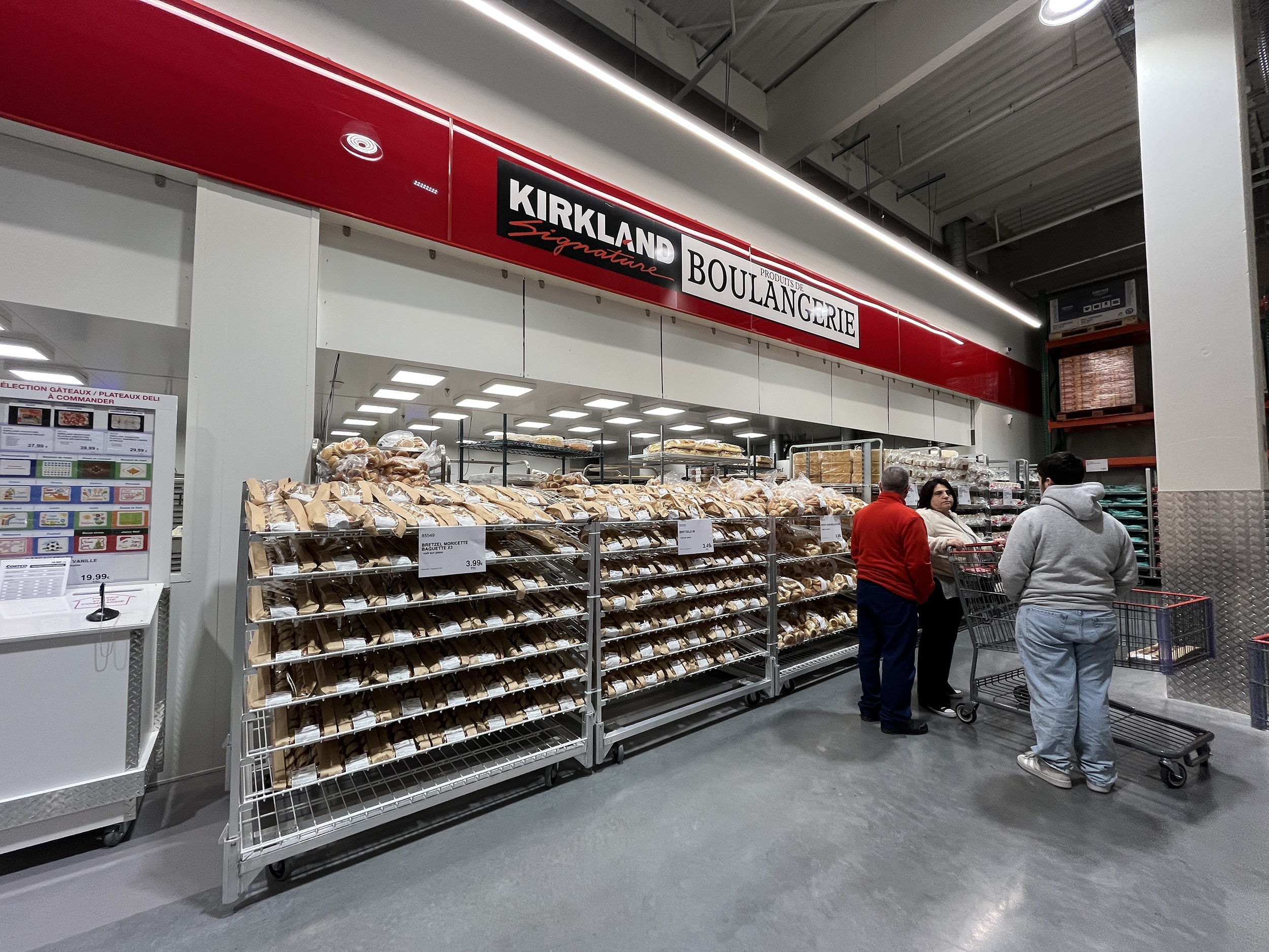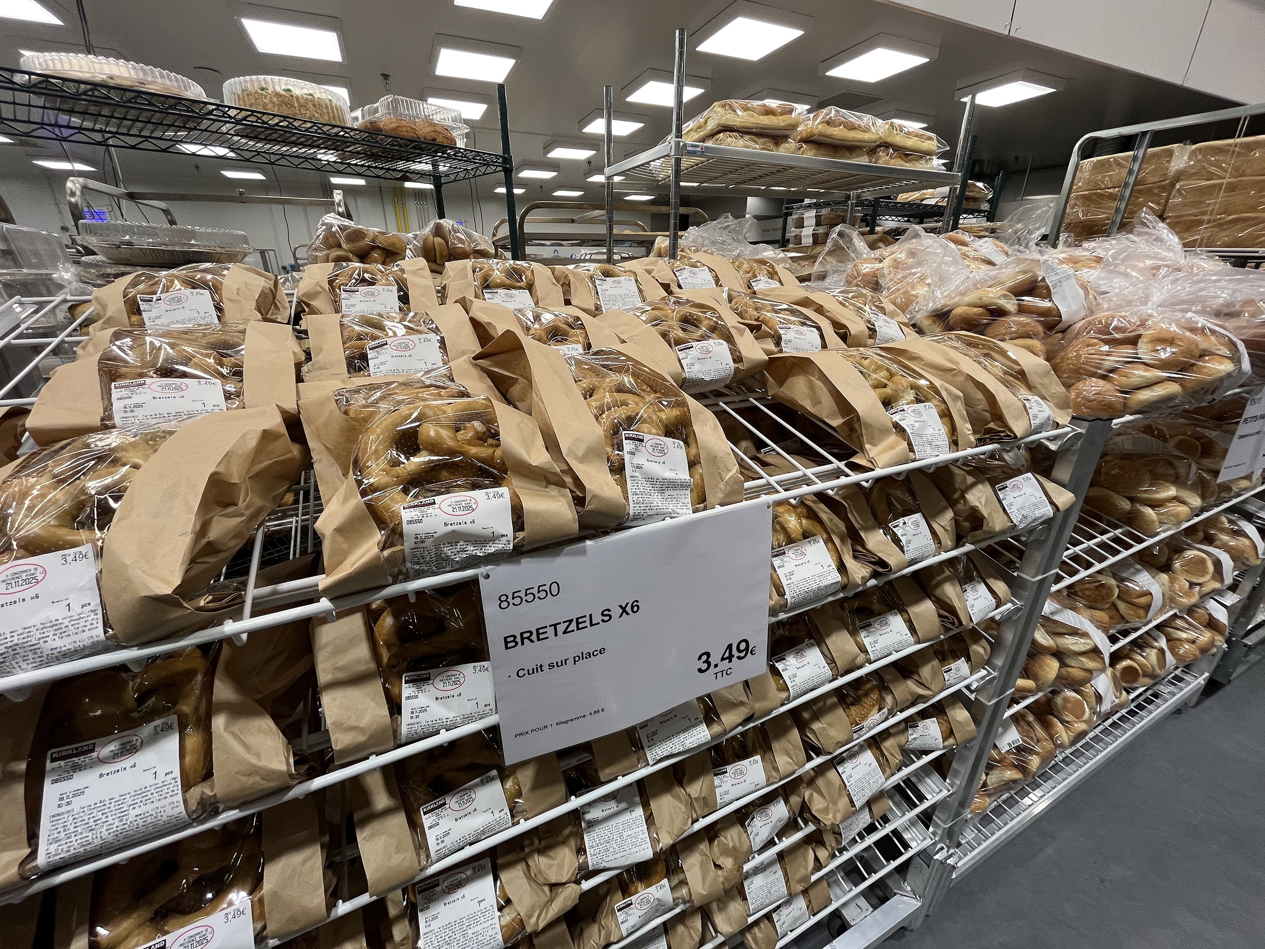 On ne vient pas chez Costco pour faire son plein de courses mais pour se laisser séduire. Sur l’alimentaire, qui représente ici 70 % des 3 600 codes disponibles, difficile néanmoins de faire totalement abstraction de la dimension régionale. Surtout en Alsace où on ne rigole pas sur la question. Costco l’a bien compris, qui est allé chercher une trentaine de fournisseurs régionaux et a pris la peine de les mettre en TG partout pour l’ouverture. L’atelier BVP déborde de bretzels et manalas (la brioche bonhomme de la St Nicolas) élaborés sur place.