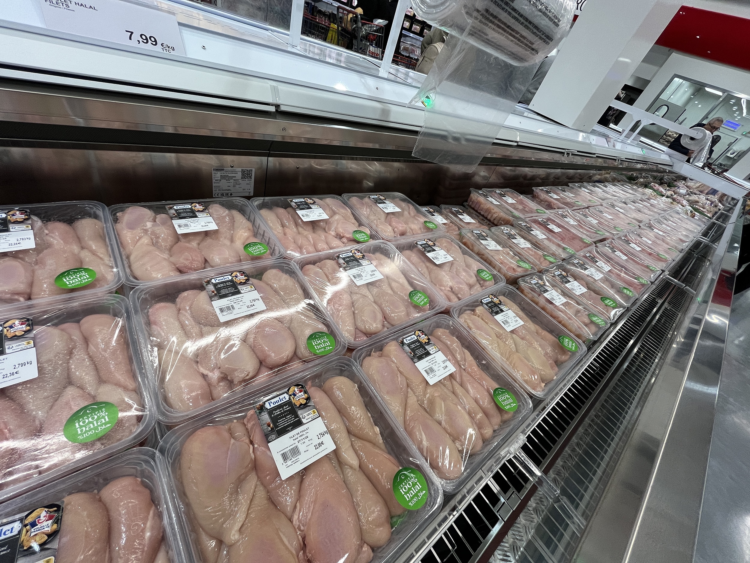 Autre adaptation locale très visible, dans cette banlieue populaire de Mulhouse : la part du halal sur la viande. Au rayon volaille, c’est largement plus de la moitié du stock exposé. Ce qui n’empêche pas, par ailleurs, de vendre des hachés venus d’Espagne ou du bœuf à l’origine USA revendiquée. Là encore, Costco peut donner l’impression de tirer dans tous les sens. Mais avec un point commun à toutes ces offres : la bonne affaire.