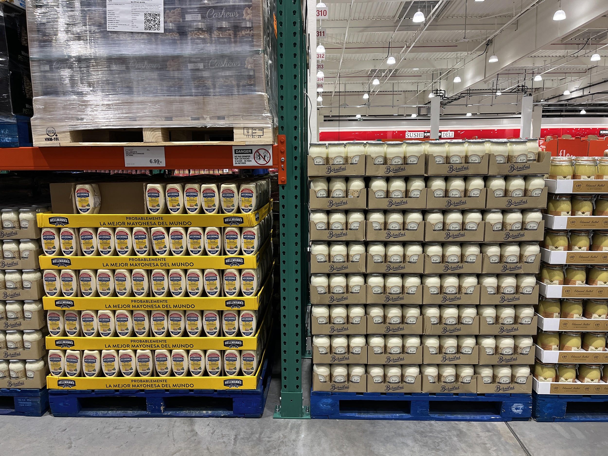 Gros sourire quand je vois la palette de Mayonnaise Hellman’s. On est en France, la marque est new yorkaise mais c’est écrit “Probablemente la mejor mayonesa del mundo”… ¡Sí, señor!