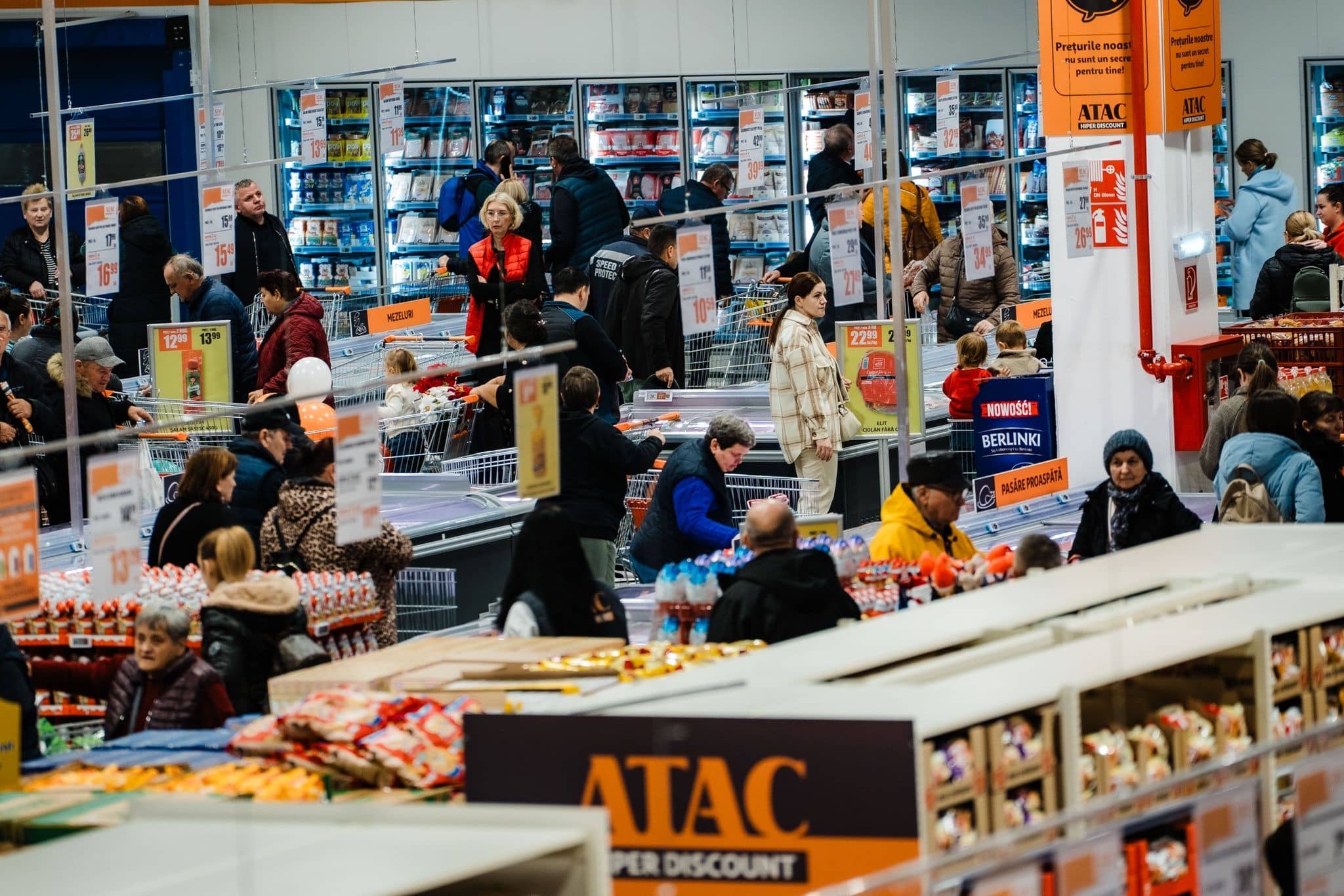 J’vous ai présenté la semaine dernière (revoir ici) le retour de l’enseigne Atac : c’est en Roumanie sous une forme discount, façon Costco (donc très spectaculaire). Le développement continue. Cette semaine, Auchan a ouvert son 9e Atac à Oradea, dans l’Ouest du pays. Avec, comme toujours, la magie du prix bas pour attirer les clients en masse… Ô saint es-Prix !