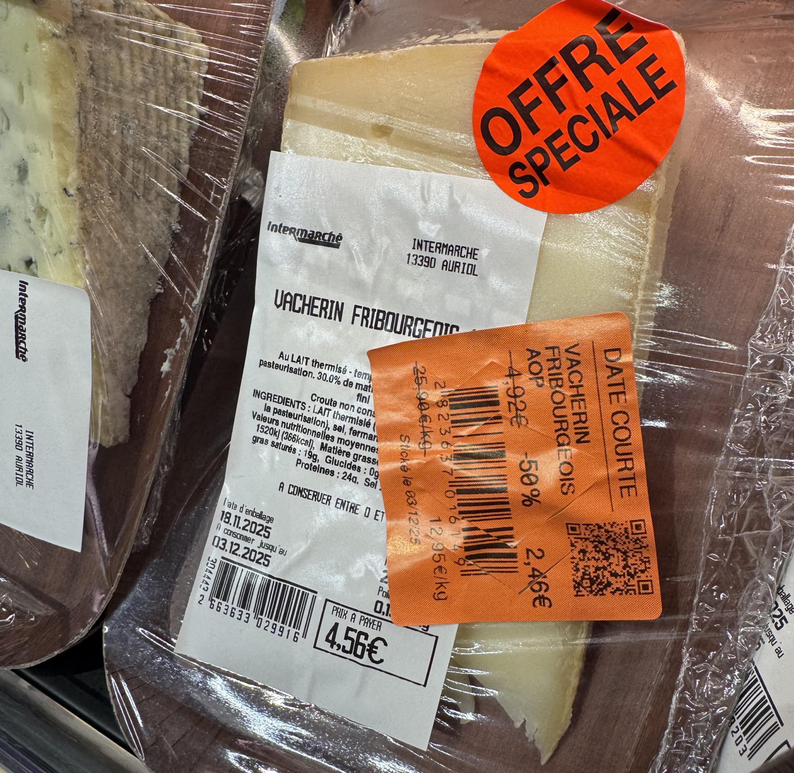 Intermarché. Verticaliser l’étiquette anti-gaspi n’y changera rien. Je vois bien le p’tit coup de pouce sur le prix avant la démarque. Rien d’excessif, mais c’est le principe !