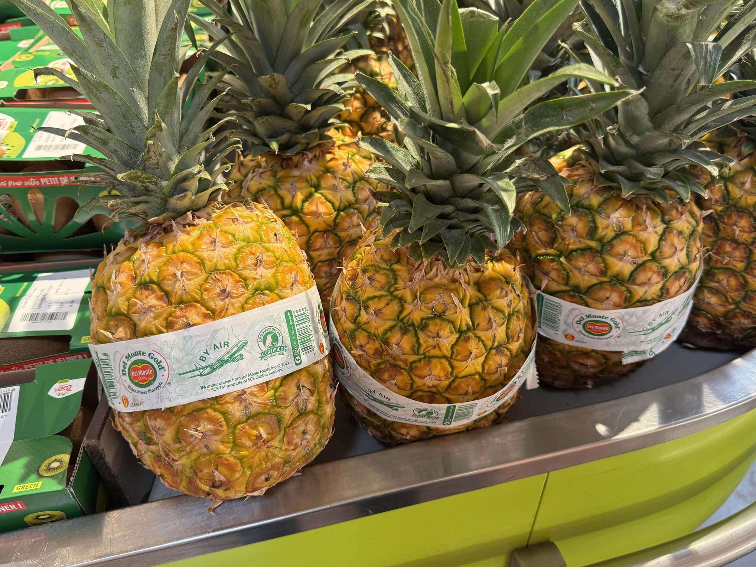 Chez Grand Frais. Donc si je résume : les « petits colis » qui débarquent de Chine en avion ? Pas bien. L’ananas par avion ? Bien ! C’est même un élément de valeur visiblement.