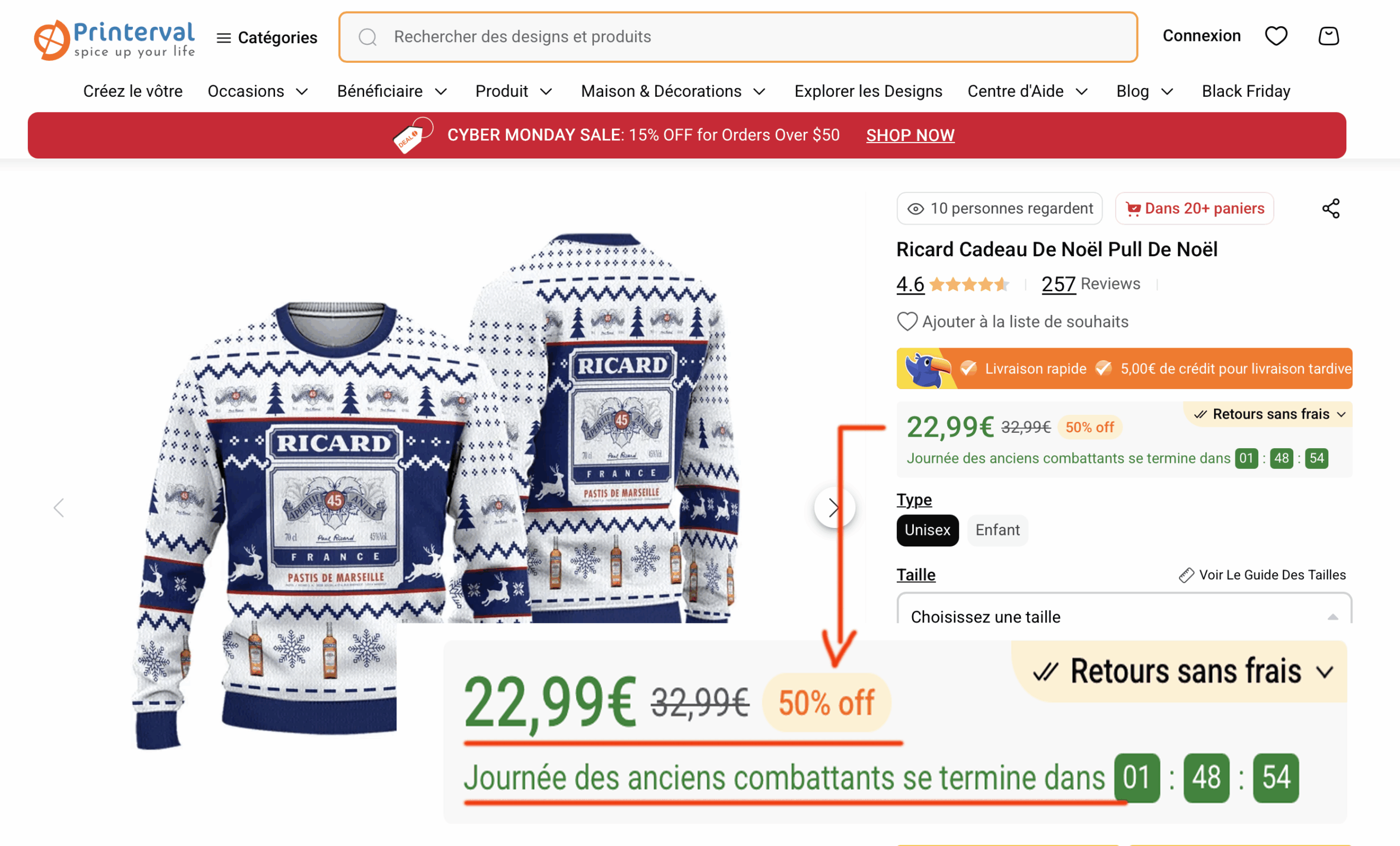 Je prépare la journée du pull moche de Noël. La page Ricard sur Printerval. De deux choses l’une : 1/ l’administrateur du site a trop bu ; 2/ Ricard est une marque de vieux. Vous lavez ?