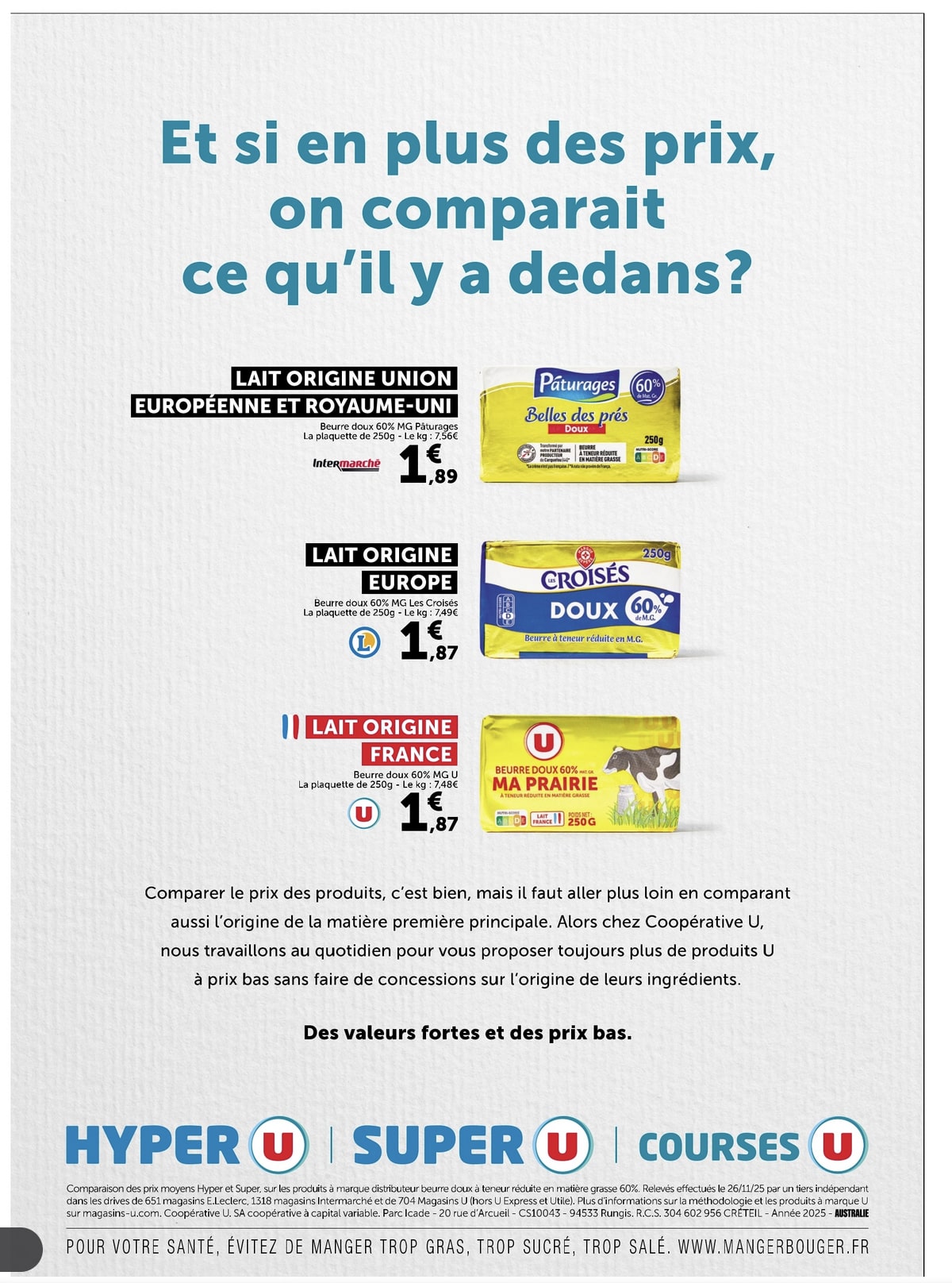 Origine chez U, suite. Sacré traçabilité… On connaît l’origine précise du lait (France), mais pas du sucre ni des fraises (UE). C’est ballot.