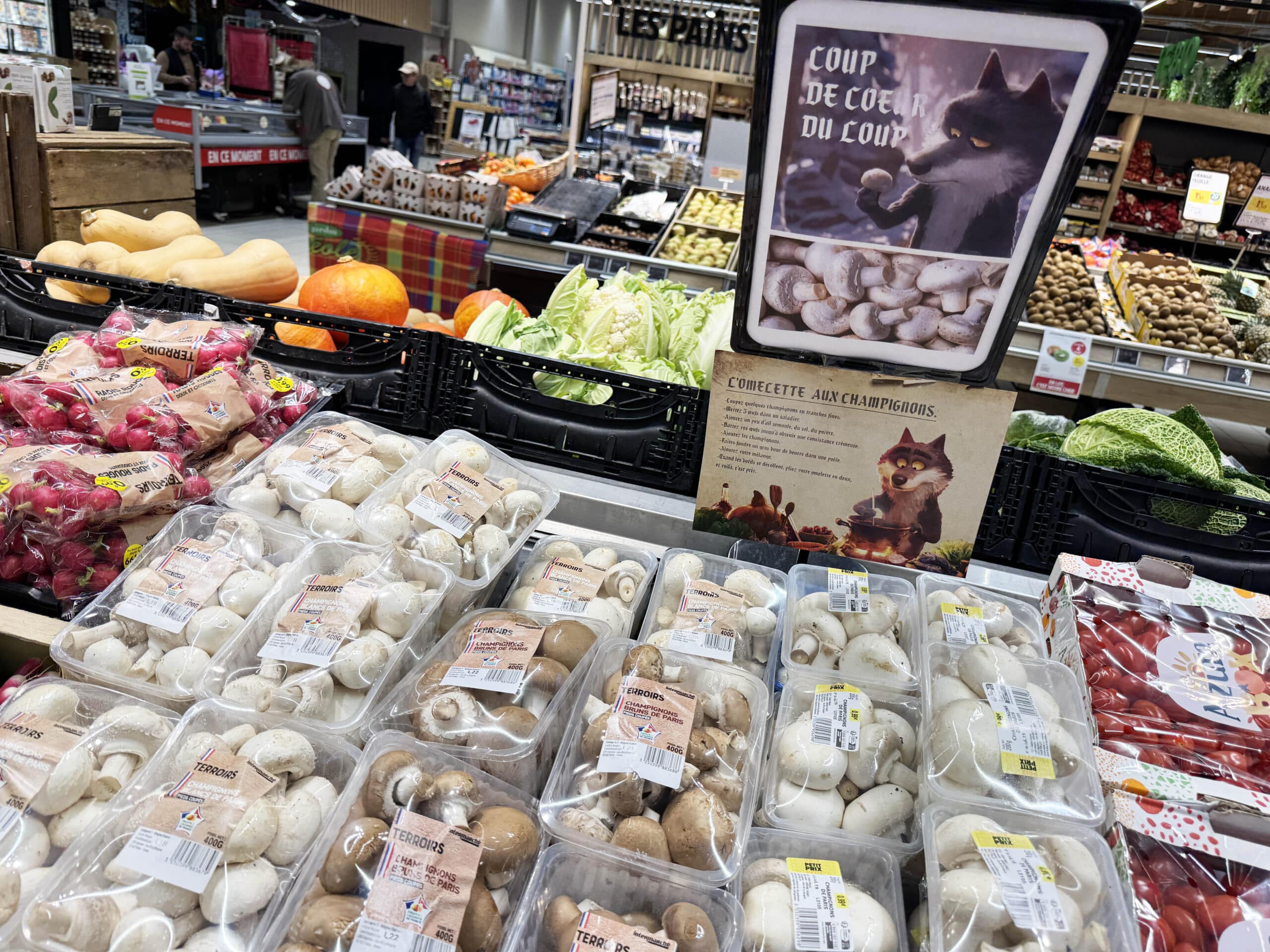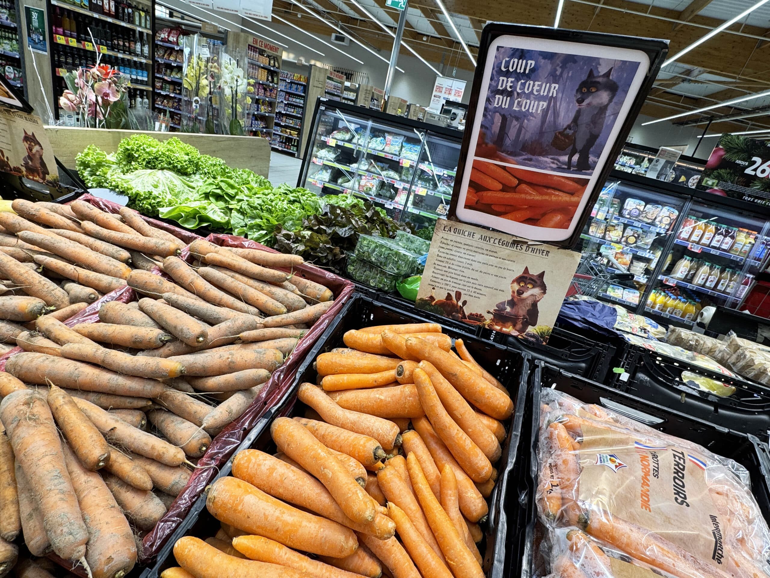 Arrivé dans le paysage commercial début décembre (en même temps que la nouvelle Miss France / c’était le même soir), “Le loup” d’Intermarché n’a pas (encore ?) de vie vraiment organisée en magasin. En tous les cas, pas de manière homogène. En voici un exemple à Laval. Le loup signe des offres fruits et légumes sous le label “coup de cœur du loup”. Avec, en guise de pas-à-pas, une idée de recette.