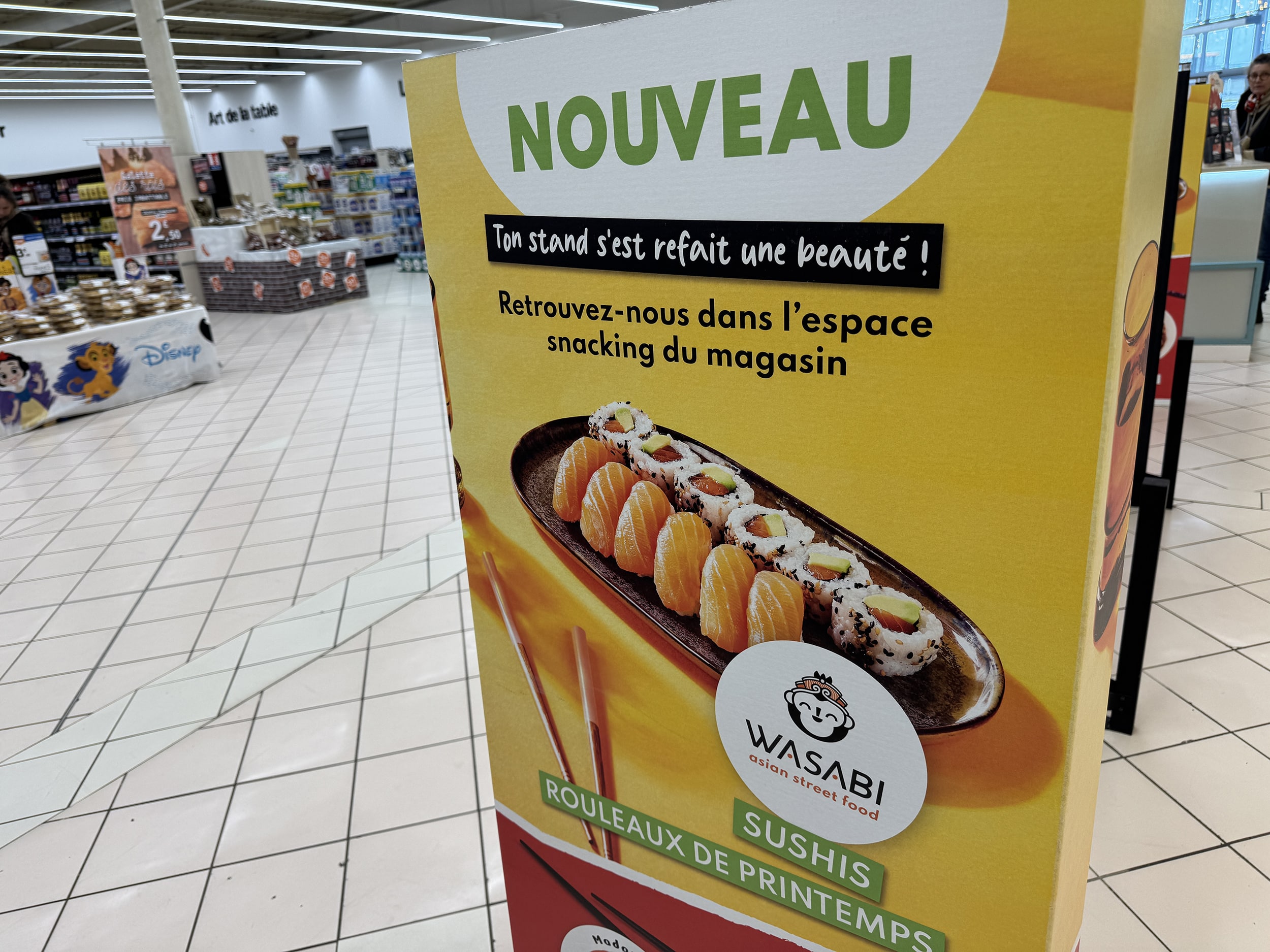 – Devant de caisses: du jambon mais aussi des Mon Chéri et des lapins Lindt… Les chewing gums se trouvent sûrement à la charcuterie.