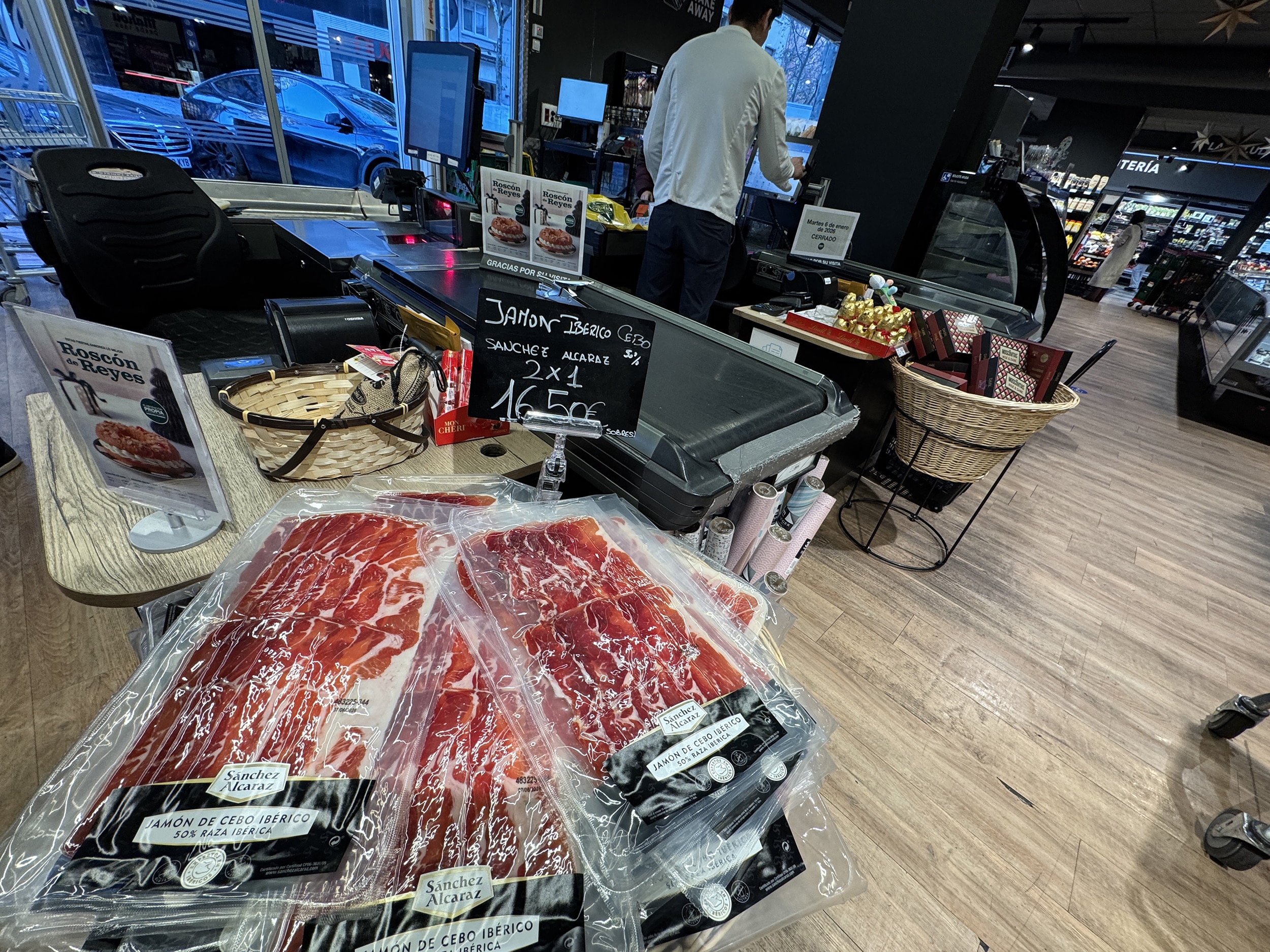 Chez Sanchez Romero, le Monoprix local (je simplifie). En devant de caisses, en guide de produit d’impulsion : du jambon iberico à 16,50 €. Ça vous aide à imaginer les clients. Blindés 🤣.