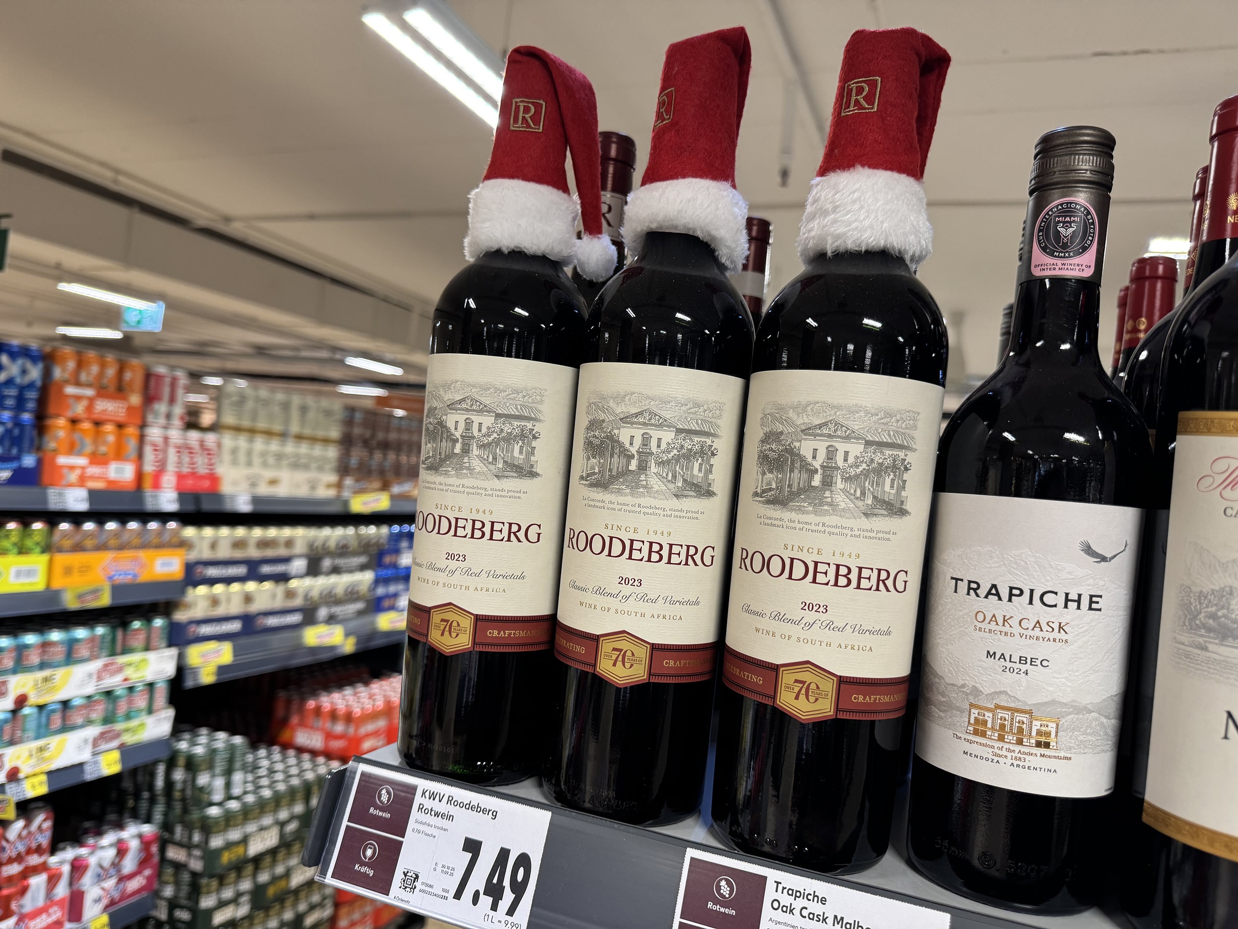 – T’as retenu quoi de ton périple en Allemagne? – Des chapeaux de Noel sur du vin… Du vin Sud-Africain; il est beau le Made in France!