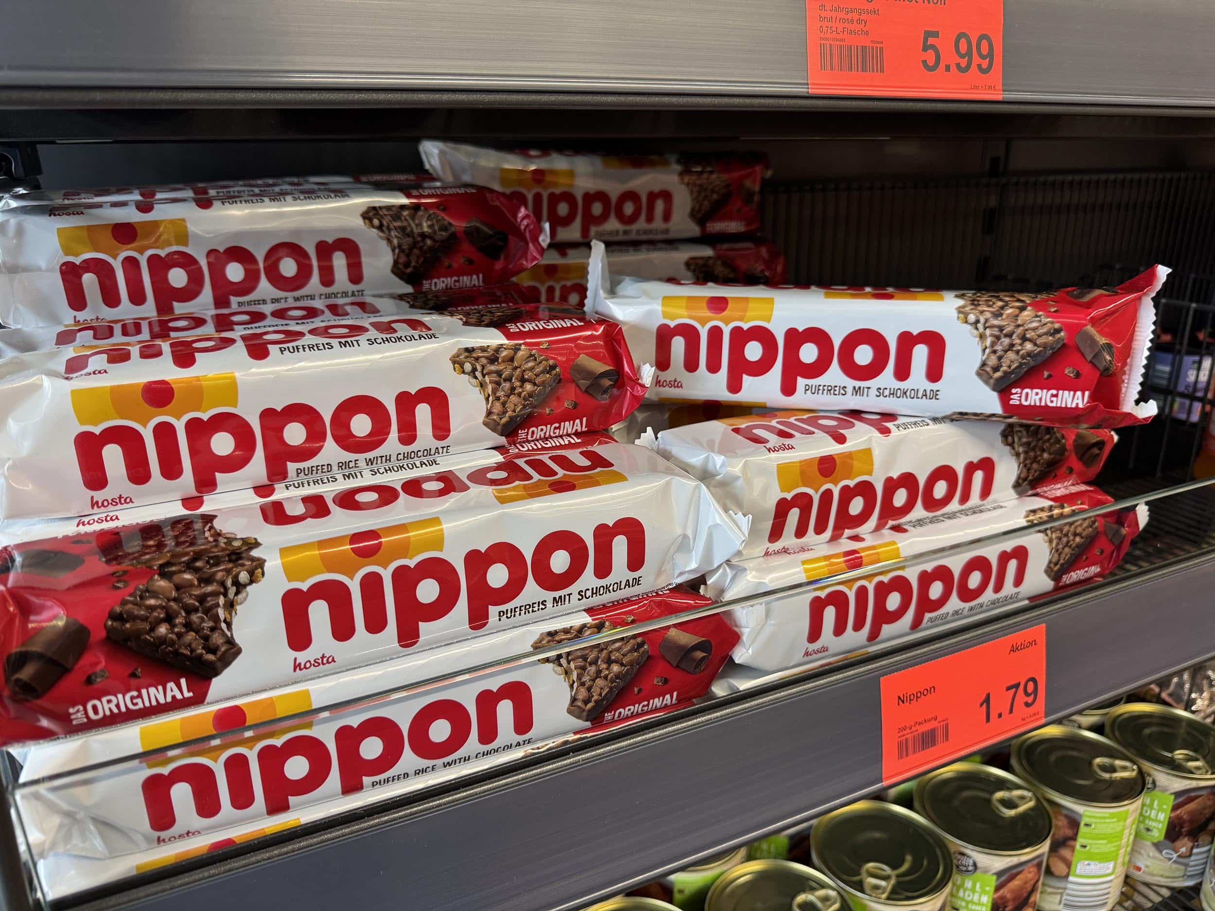 Chez Aldi. Les biscuits ? « Nippon ». Ni mauvais. Culture « Inconnus » (pour les plus jeunes).