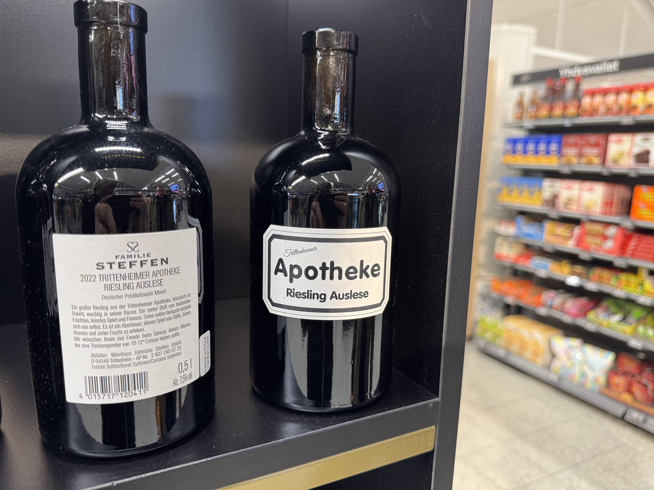 Kesko en Finlande. Le vin, c’est la santé ! La preuve : « Apotheke ». Claude Évin en PLS.