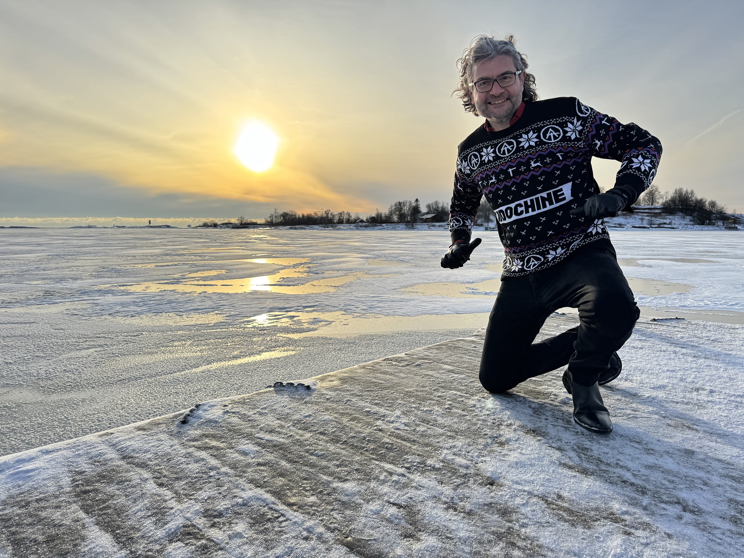 Dans le froid de la baie d’Helsinki (– 15 °C au compteur, ressenti – 20°C). Improbable : deux mariés prennent la pose devant un photographe. Mieux vaut que la première photo soit réussie quand même…