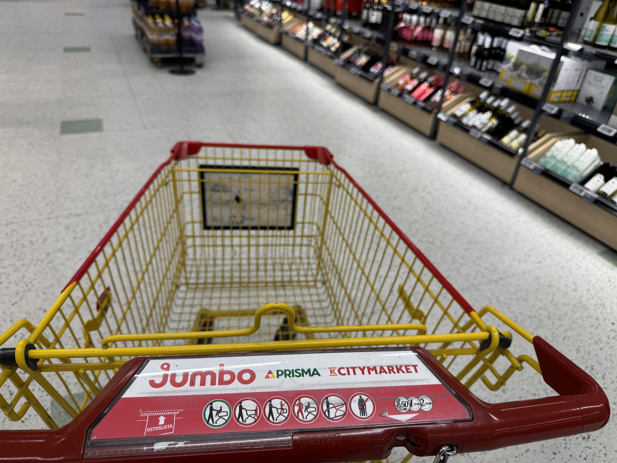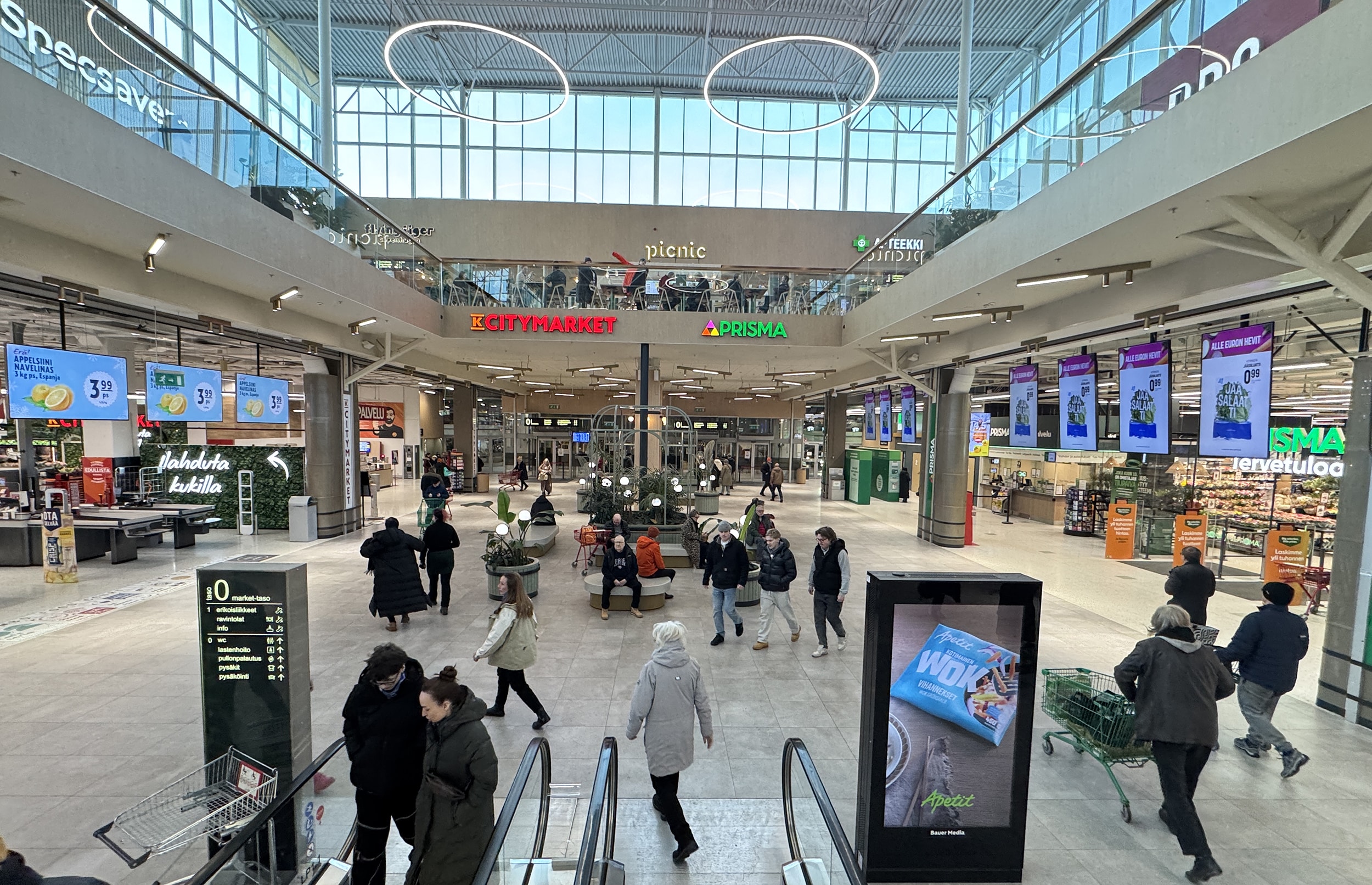 Ça, c’est de la concurrence ! Dans le centre commercial Jumbo à Helsinki : K Citymarket à gauche, Prisma à droite. Comme si Carrefour et Intermarché se faisaient face…