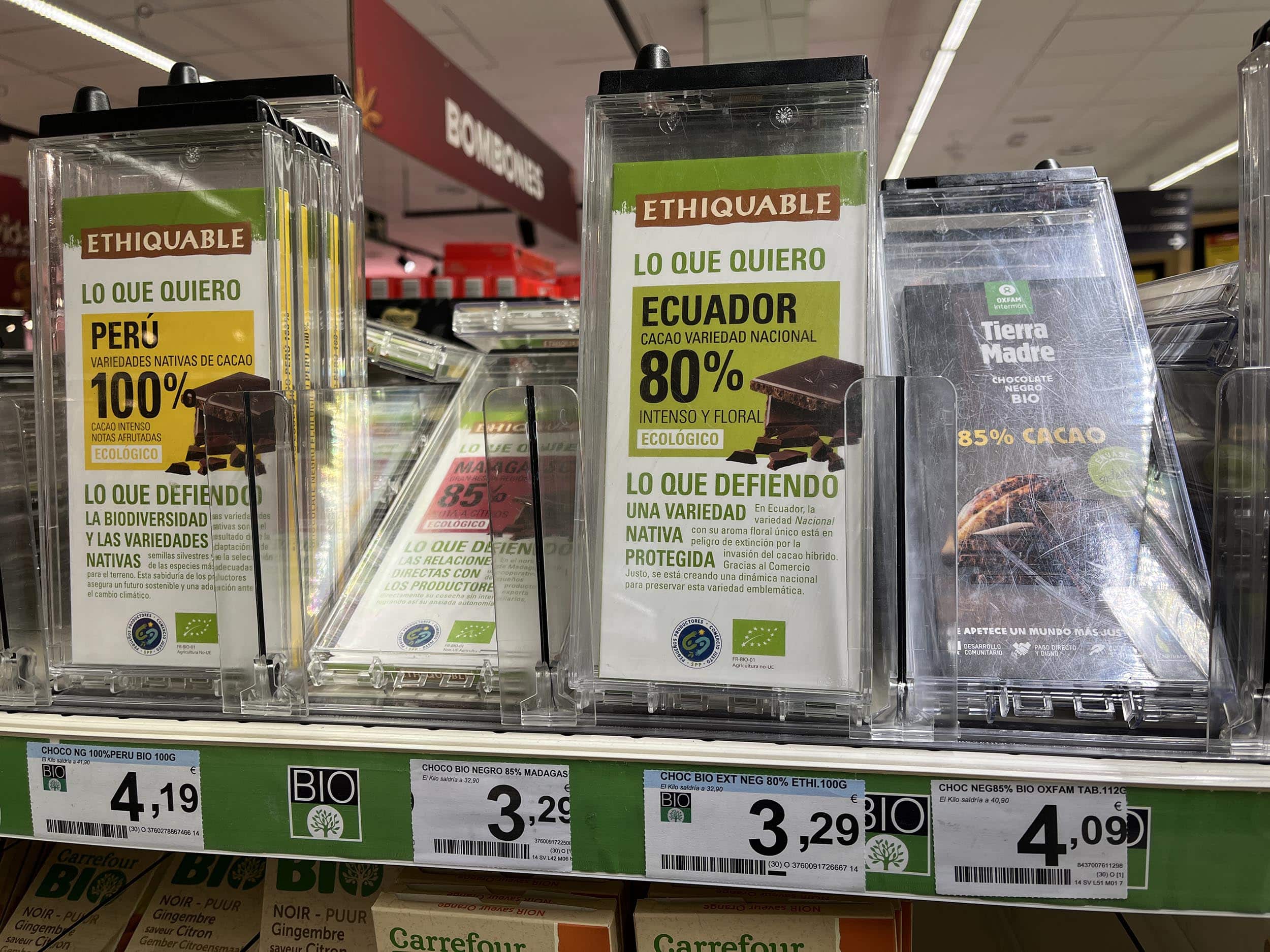 Les tablettes de chocolat antivolées ? L’Espagnol est voleur. Ou le bio-équitable hors de prix.