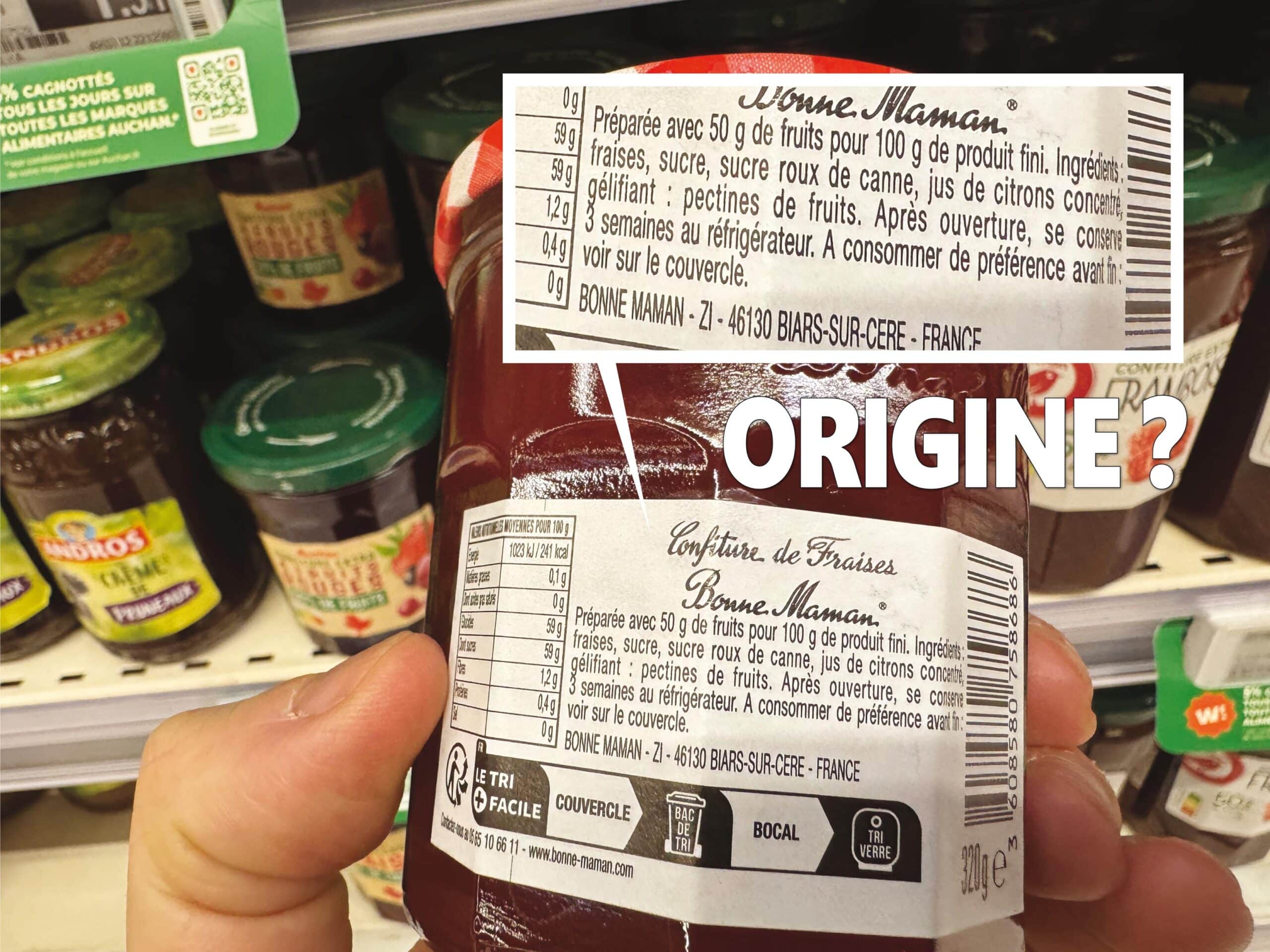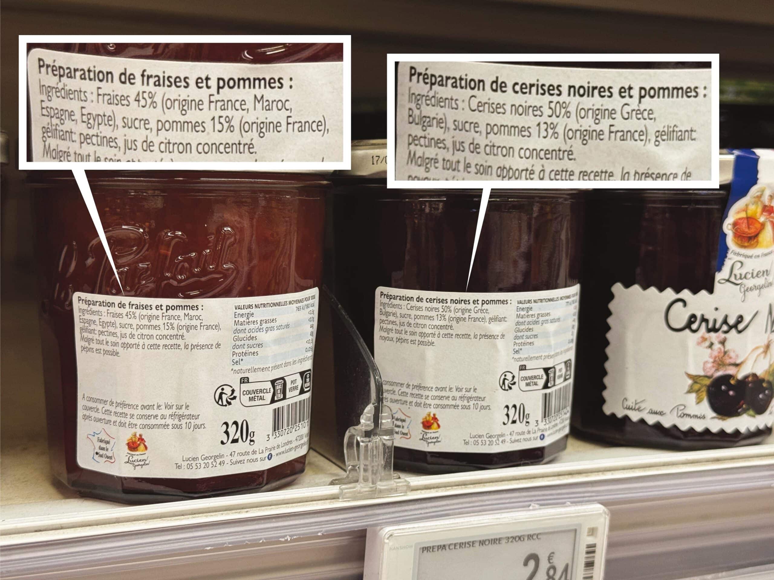 Première étape sur le chemin de la transparence au printemps 2024 : Lucien Georgelin accepte de publier la répartition de ses approvisionnements (voir ici). Nouvelle étape depuis quelques mois avec le libellé précis des pays fournisseurs indiqué sur les étiquettes. Ce qui permet d’en finir avec l’hypocrite UE / non UE. Le niveau d’approvisionnement français est certes perfectible, la visibilité et la précision aussi. Il n’empêche… Georgelin va au-delà de ses obligations et démontre qu’il est tout à fait possible d’être transparent (et que l’argument de l’impossibilité utilisé par certains est irrecevable !). Surtout, Georgelin va au-delà de ses concurrent, par exemple les MDD ou Bonne Maman. Et c’est précisément pour ça que j’en publie les photos. Juste pour les provoquer (et leur montrer que Georgelin est bien meilleur qu’eux sur le sujet).