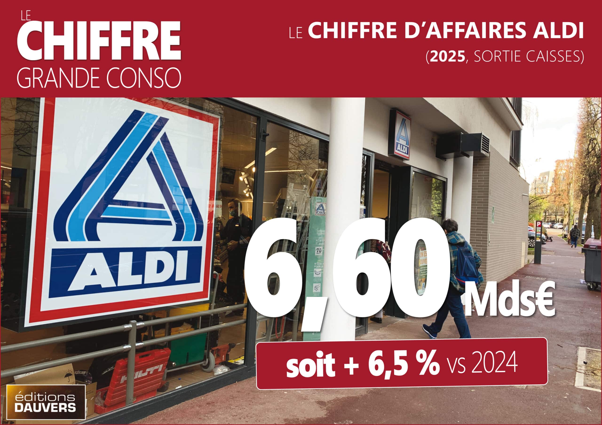 Suite de mes p’tits bilans de l’année (qui vient de s’achever). A présent : Aldi. L’an dernier, selon mes informations, les ventes du discounter allemand ont progressé de 6,5 % en France. Ce qui représente donc un CA total de 6,6 milliards d’euros. En parallèle, la part de marché PGC / Frais LS (telle que mesurée par Worldpanel) n’a que faiblement progressé : de 2,7 % (en 2024) à 2,8 % (en 2025). Explication : pour l’essentiel, la progression d’Aldi est le fait des fruits et légumes et de la boucherie, hors PCG Frais LS donc.