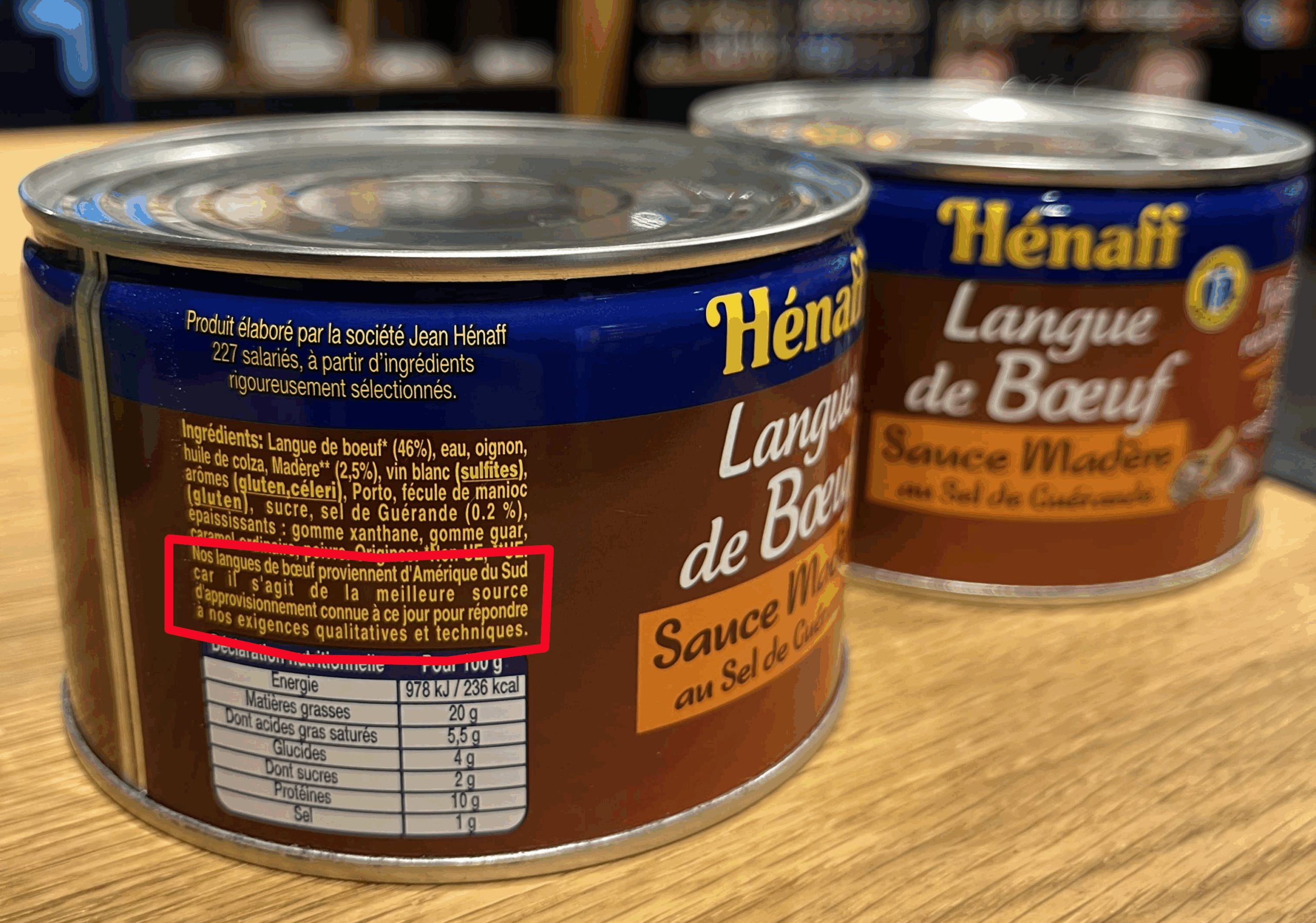 Voilà pourquoi je préfère largement la langue de bœuf affichée clairement “Mercosur” Hénaff aux autres langues de bœuf hypocritement indiquées “origine UE/non UE”, ou encore au cassoulet toulousain avec du porc UE, ou aux escargots de Bourgogne UE / non UE.