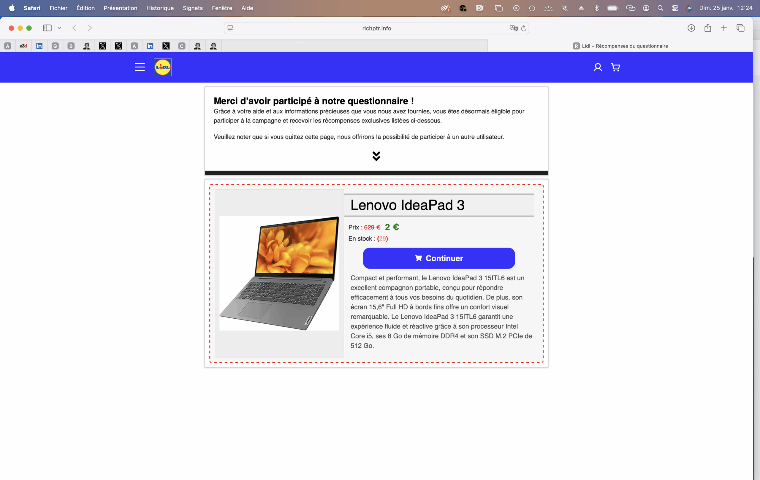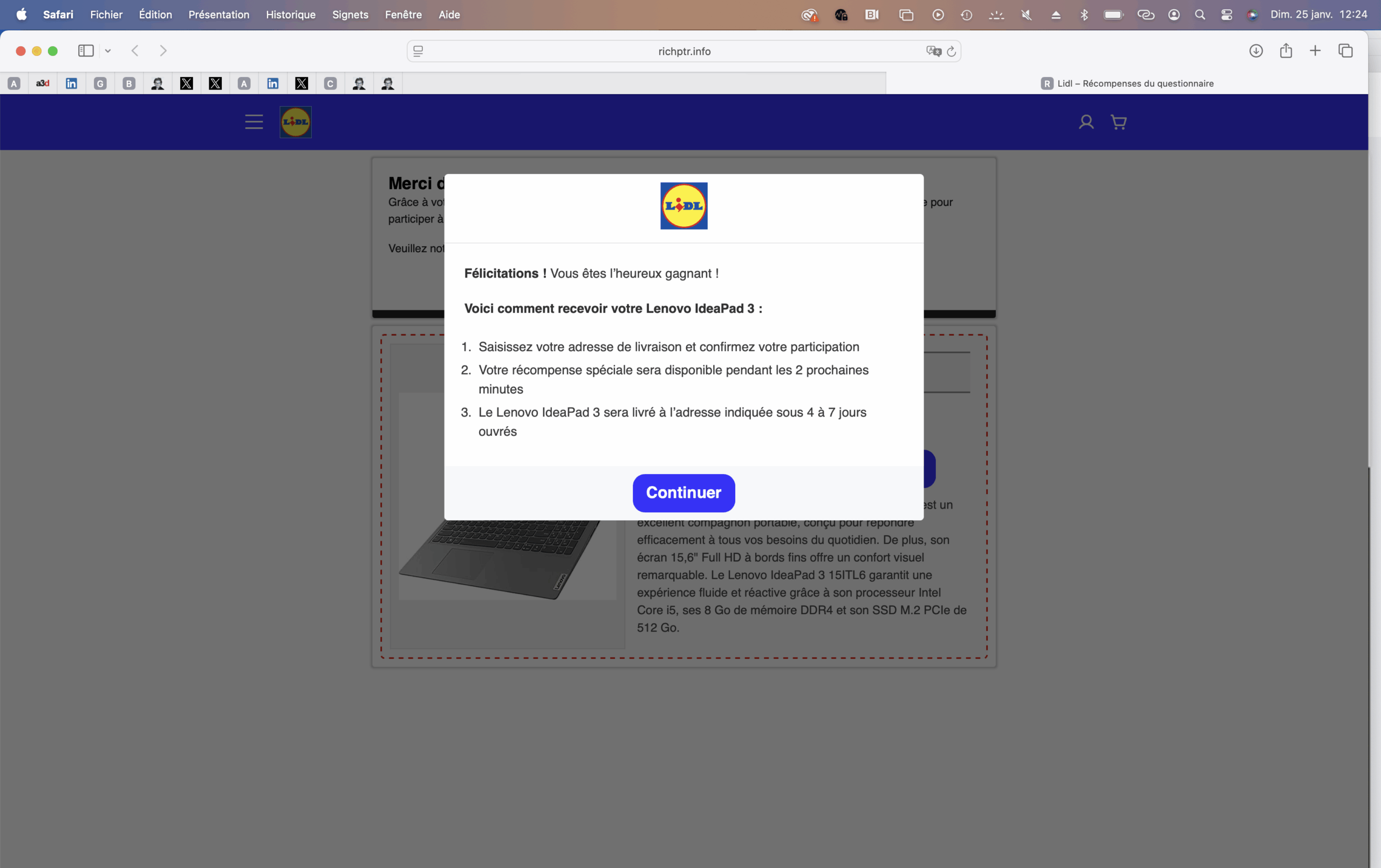Pour les besoins de ma quotidienne conso sur M6 (Ça peut vous arriver, 11h tapantes, pendant le flash info sur RTL), je traque les dark patterns sur le web. Et force est de constater que Lidl et Action sont les deux enseignes les plus usurpées pour monter des arnaques. Sans doute efficace pour les arnaqueurs, parce que les enseignes sont rassurantes, mais nocif pour leur image. Sans compter évidemment les victimes.