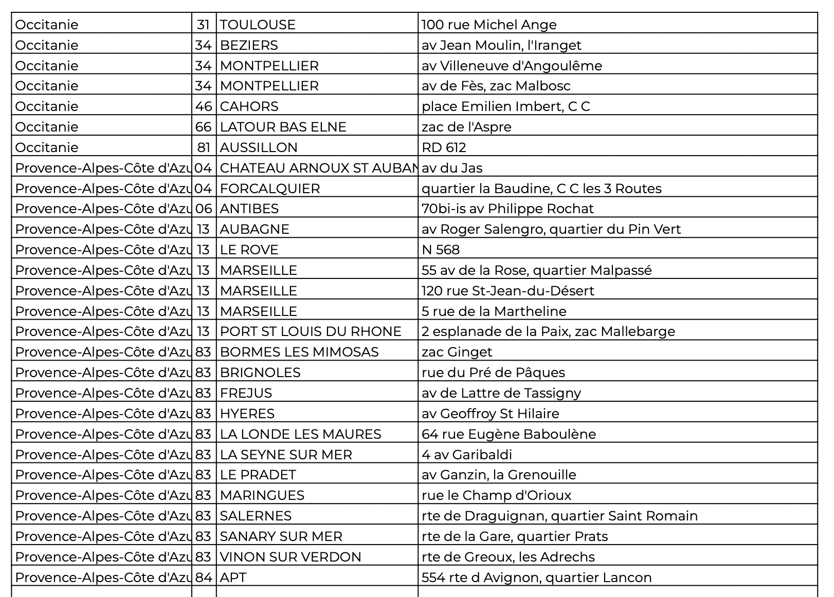 Et pour les curieux ou les intéressés, les 91 magasins mis en vente >>