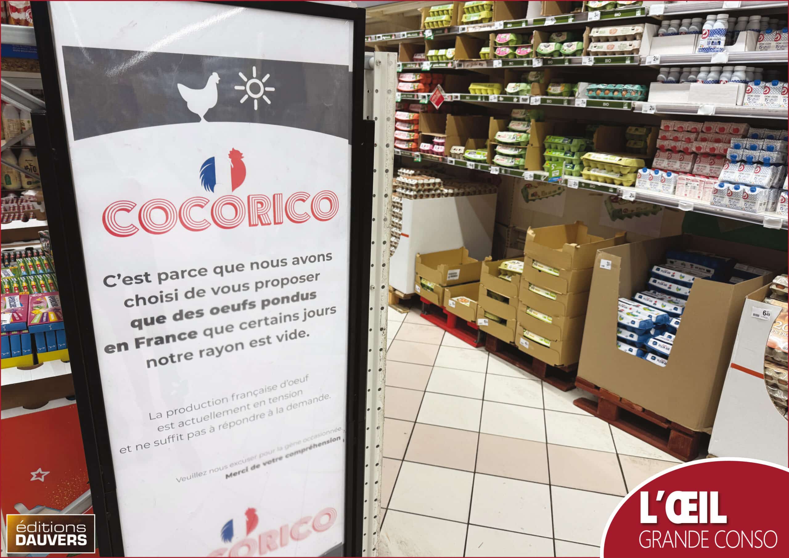 Aujourd’hui à Auchan Val d’Europe qui… revendique les ruptures sur le rayon œufs. “C’est parce que nous avons choisi de vous proposer que des œufs pondus en France que certains jours notre rayon vide”. Deux intérêts : d’abord, mieux vaut toujours assumer que se cacher ! ; ensuite, c’est une posture différenciante vs des concurrents locaux qui ont ponctuellement “accepté” des œufs d’ailleurs.