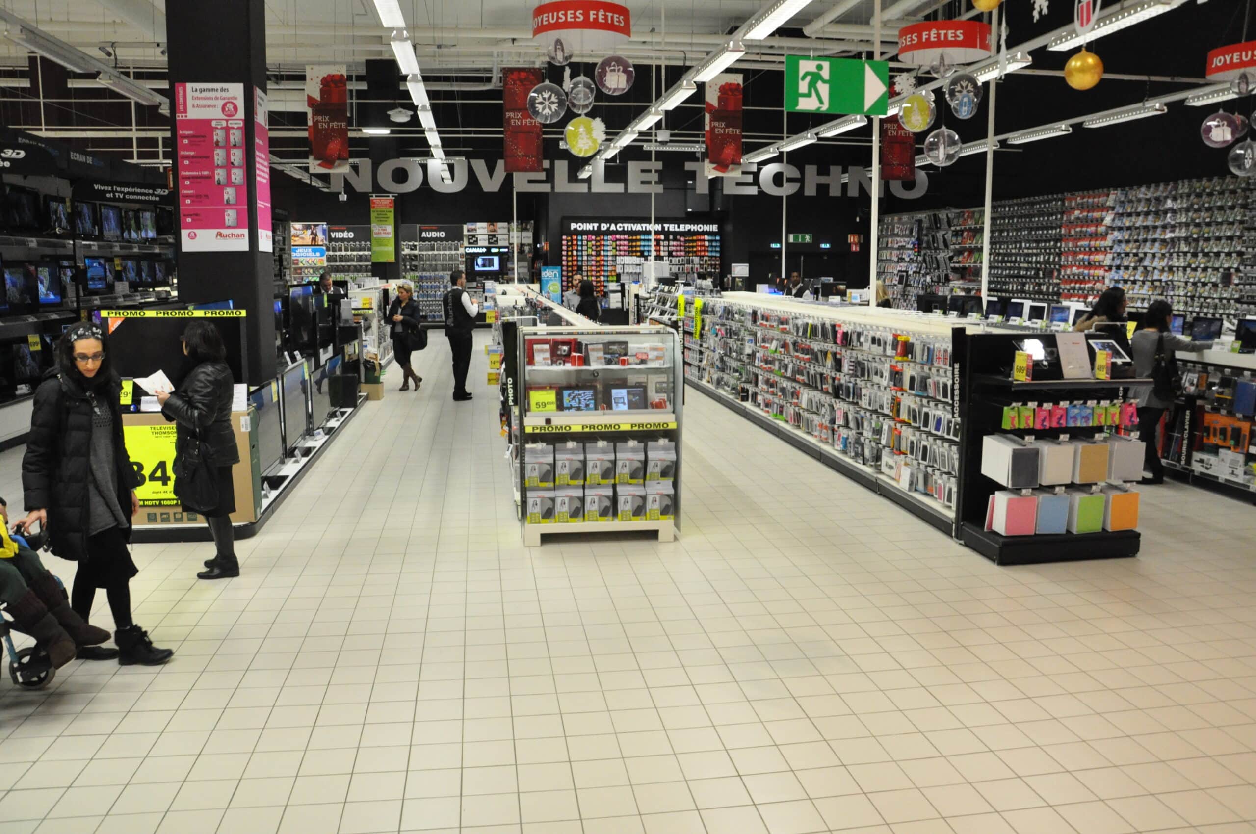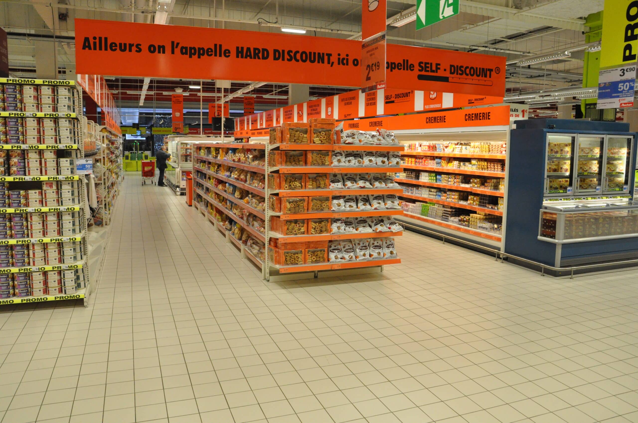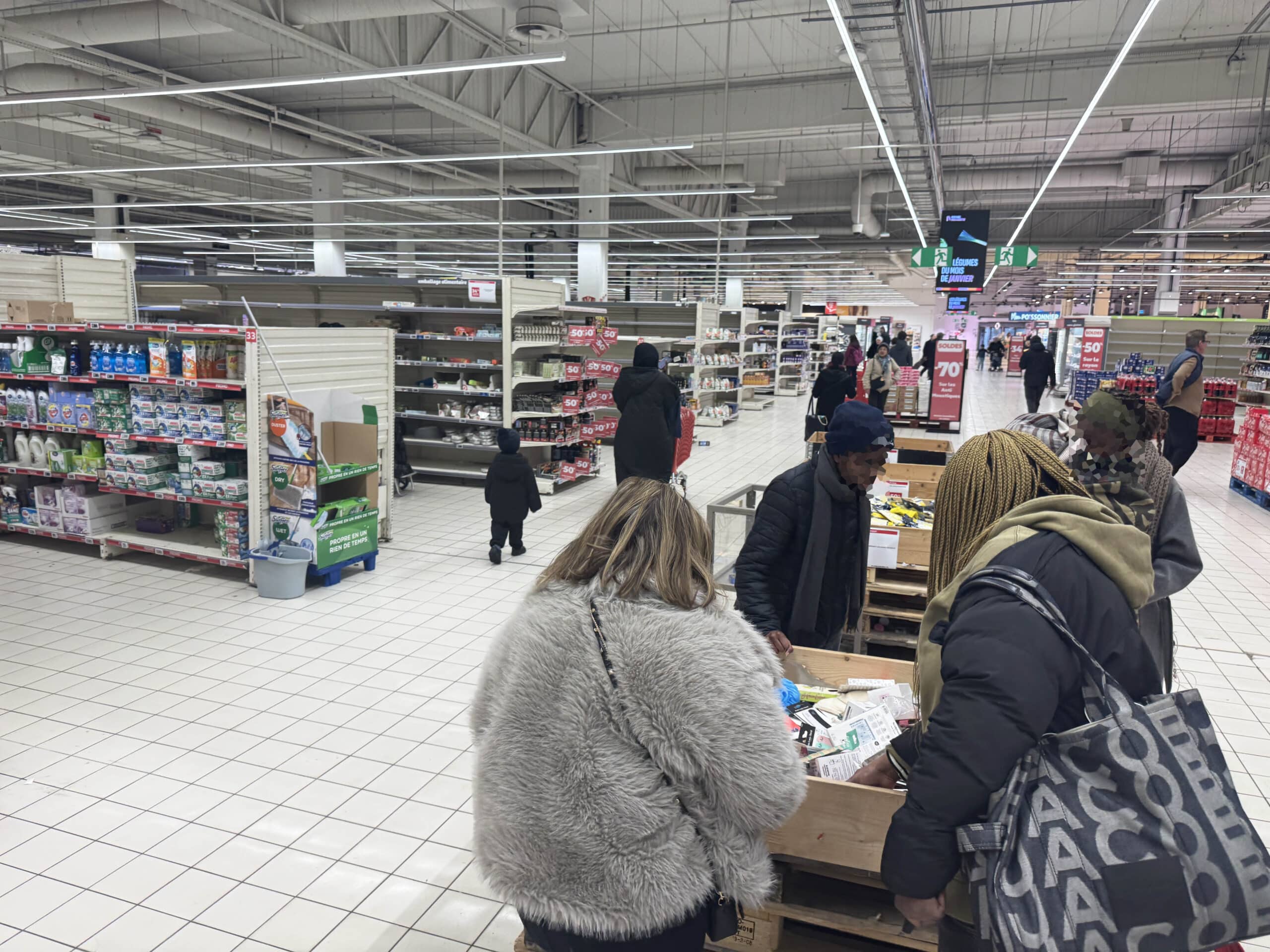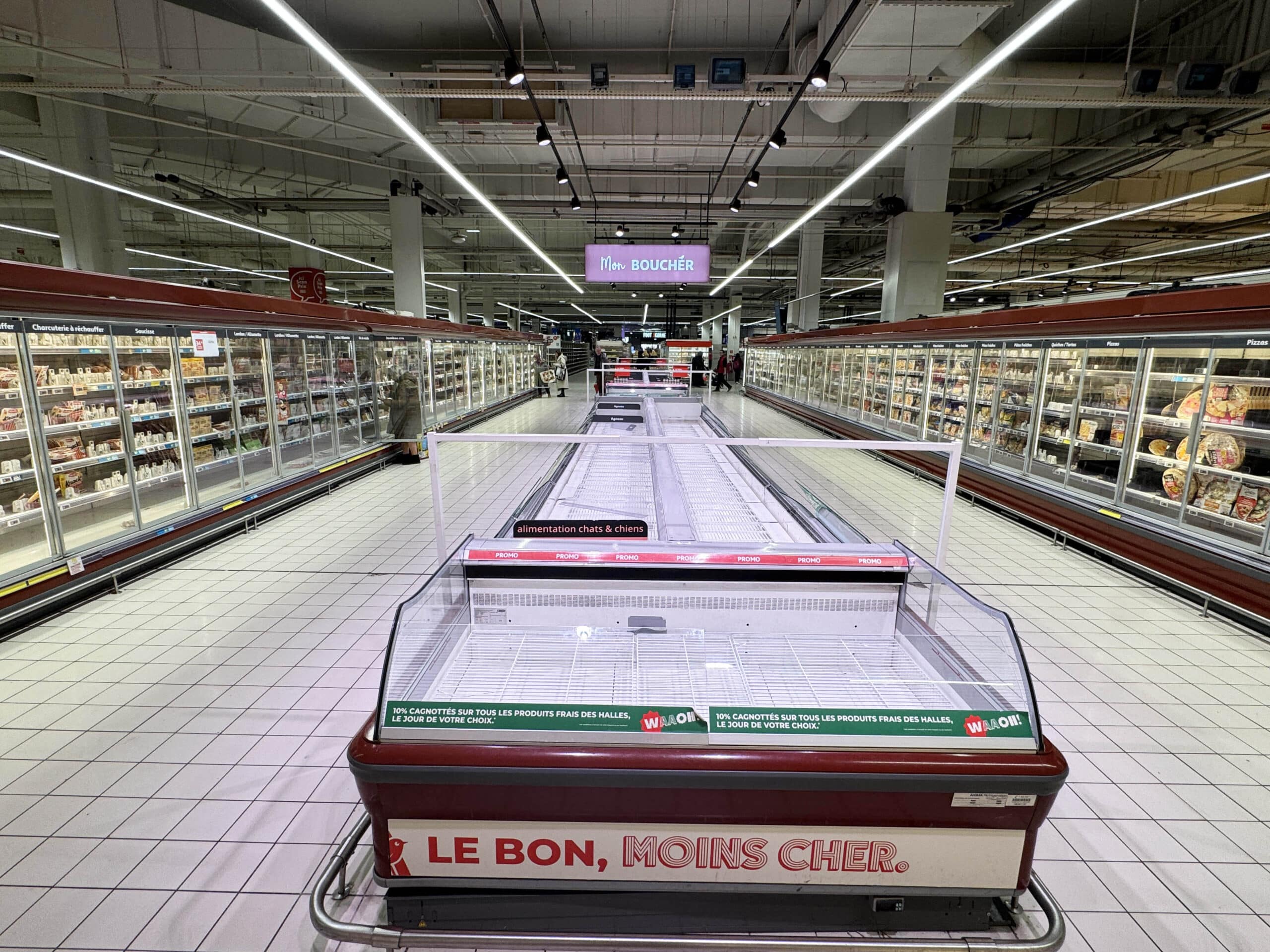 Toujours les mêmes images, glaçantes, à quelques jours de la fermeture d’un magasin… Demain, donc, Auchan Sarcelles baissera définitivement le rideau. 14 ans et 2 mois après l’ouverture, c’était fin 2011 (revoir mon reportage photos de l’époque en fin de post). D’ici là, l’hyper brade, écoule, déstocke, range. Un tiers de la surface de vente (le non-al) est déjà condamné. Le reste des rayons est plus que clairsemé. L’objectif ? “Atterrir” avec la valeur de stock la plus faible possible, quitte à afficher – 50 % sur tout l’alimentaire depuis ce matin (ce qui devrait aider à nettoyer les rayons).