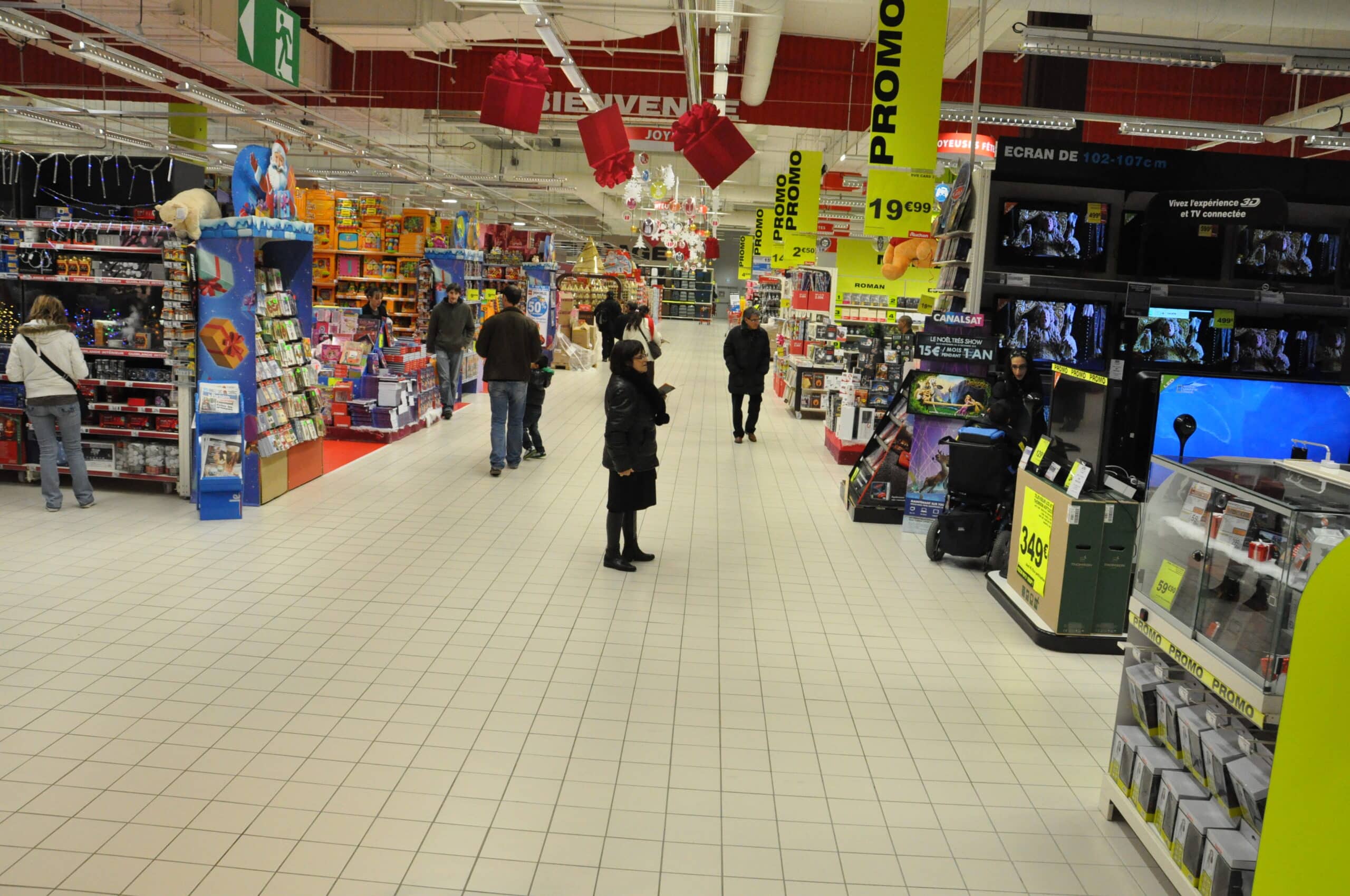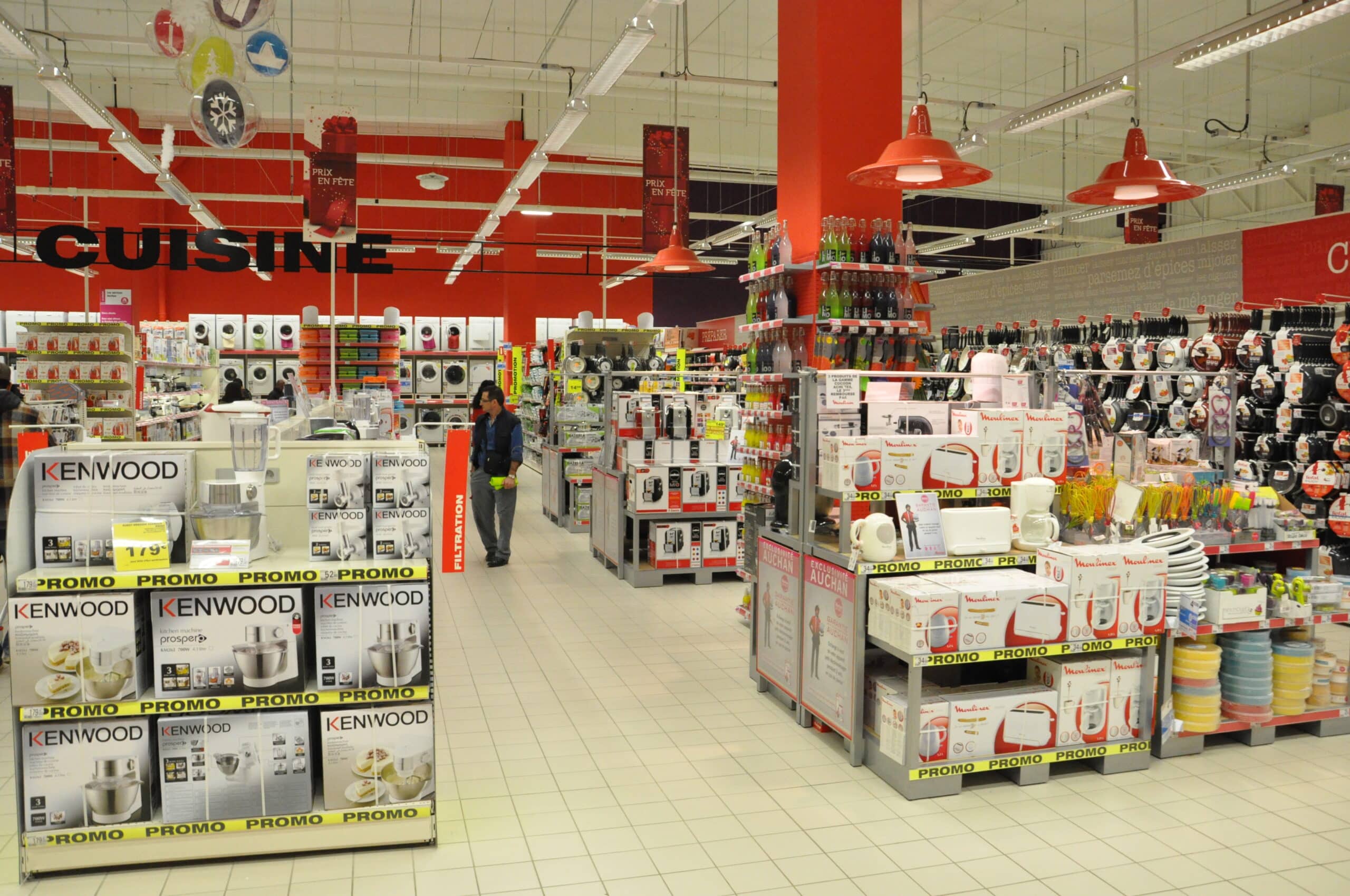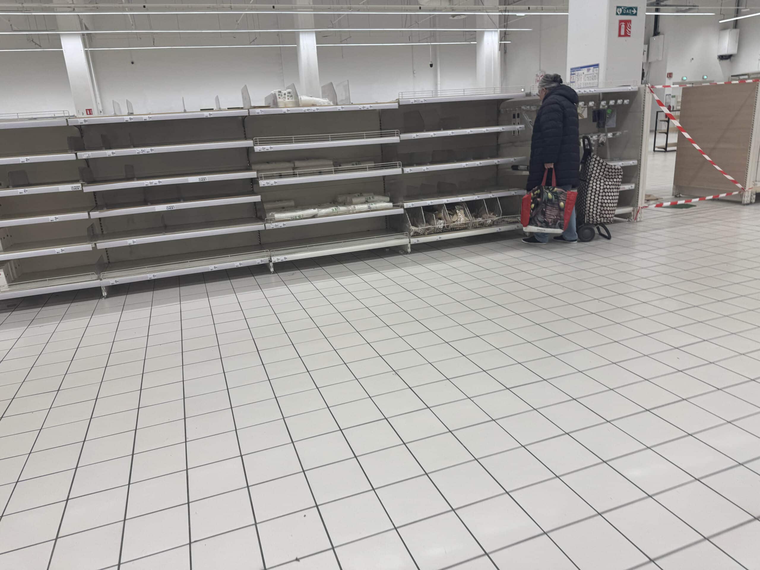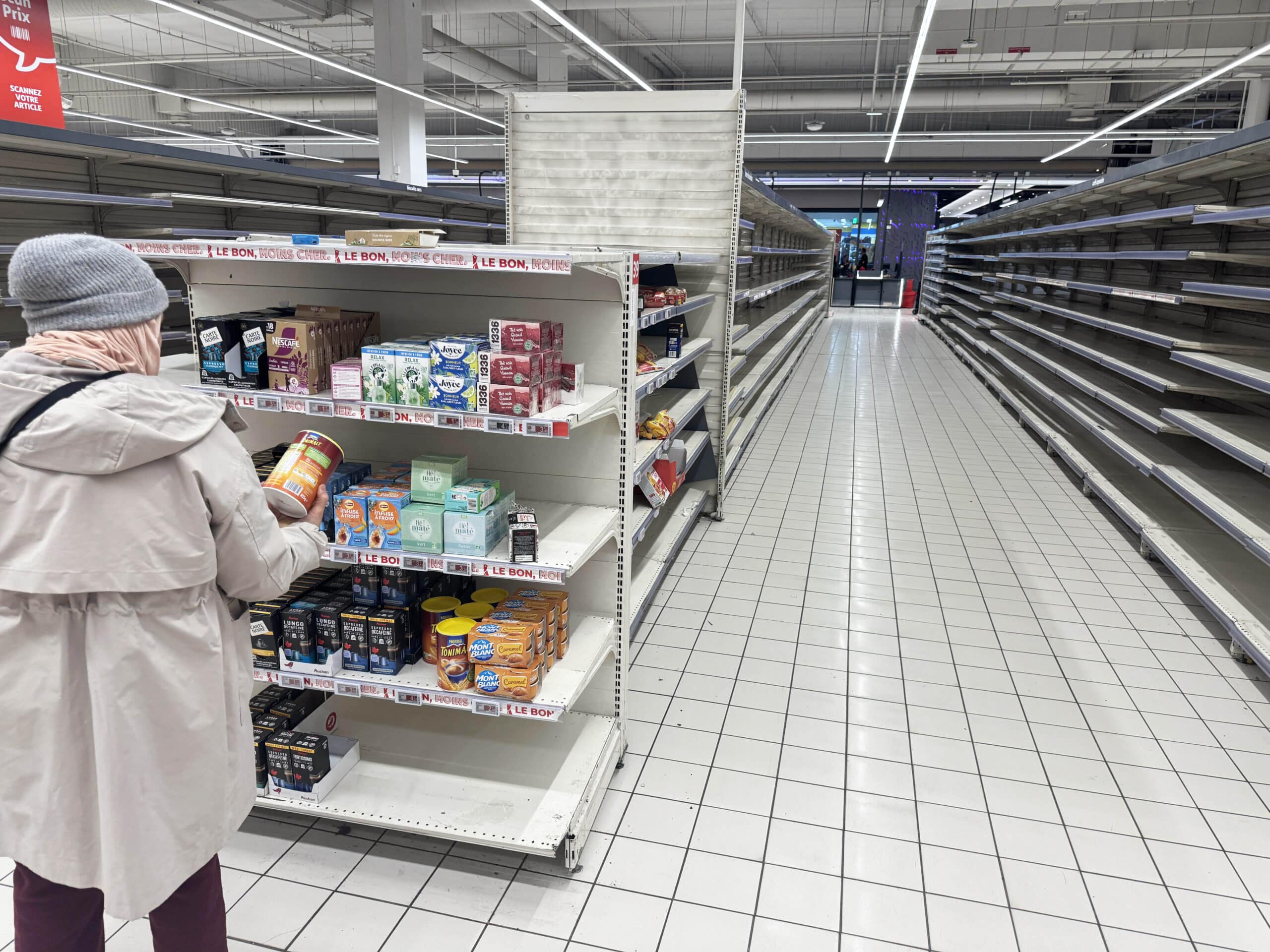 Toujours les mêmes images, glaçantes, à quelques jours de la fermeture d’un magasin… Demain, donc, Auchan Sarcelles baissera définitivement le rideau. 14 ans et 2 mois après l’ouverture, c’était fin 2011 (revoir mon reportage photos de l’époque en fin de post). D’ici là, l’hyper brade, écoule, déstocke, range. Un tiers de la surface de vente (le non-al) est déjà condamné. Le reste des rayons est plus que clairsemé. L’objectif ? “Atterrir” avec la valeur de stock la plus faible possible, quitte à afficher – 50 % sur tout l’alimentaire depuis ce matin (ce qui devrait aider à nettoyer les rayons).