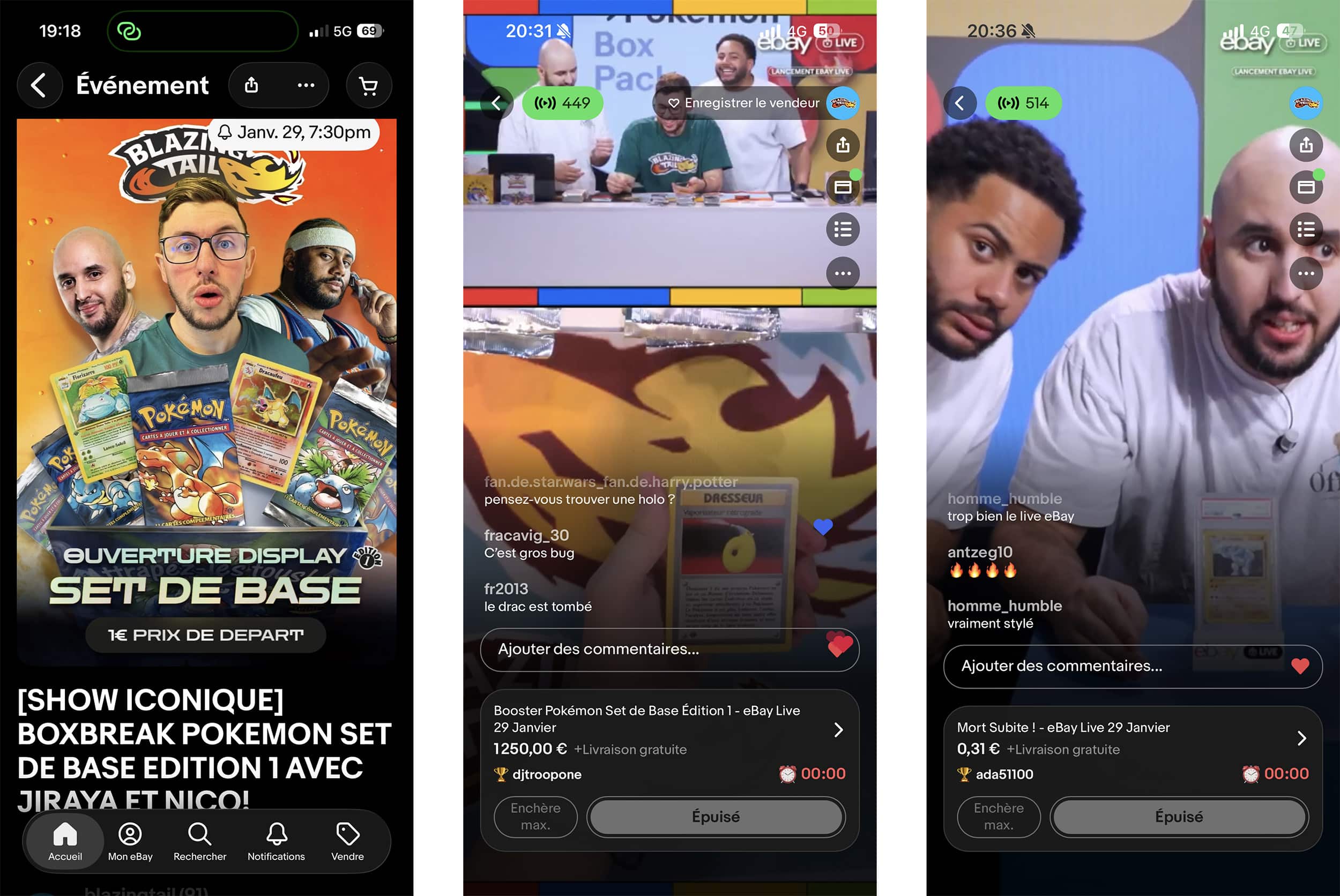 Des problèmes de connexion récurrents ont gâché la fête. Ça arrive. C’est dommage, l’entreprise avait mis les petits plats dans les grands. La première session événementielle, hier soir, avait démarré comme un show TV. En studio et en public, l’équipe de Blazing Tail, spécialisée dans les cartes à collectionner, mettait en vente plusieurs perles de son catalogue. Avec en tête d’affiche un set de base Pokemon de 1999, jamais ouvert, dont l’entreprise espérait bien tirer la somme rondelette de 60 000 euros.
