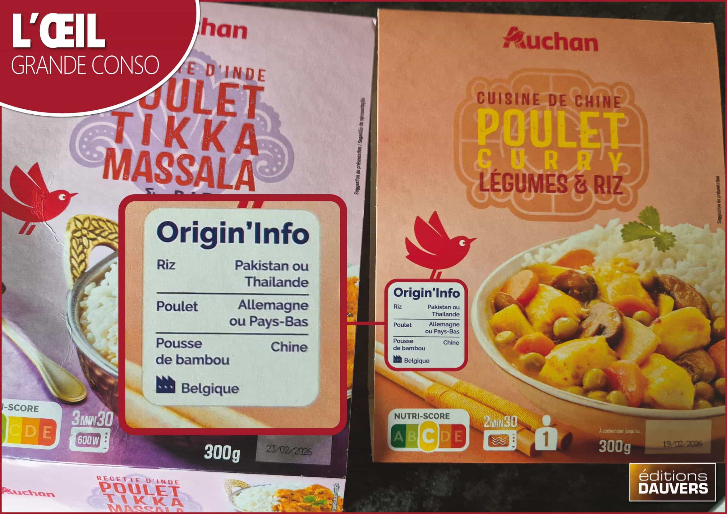 Voilà enfin l’Origin’Info que j’attendais ! Un Origin’Info transparent à défaut d’être vertueux. Car ce plat n’a rien de vertueux en apparence : rien (de ce qui pourrait l’être) n’est français. L’usine ? En Belgique. Le poulet ? Allemand ou Néerlandais. Mais Auchan assume. Auchan ne cache rien. Ça change tant des hypocrites (ils se reconnaîtront) s’engageant derrière Origin’Info à grands coups de communication officielle et/ou de posts Linkedin mais incapables de donner un pays précis quand leurs ingrédients ne sont pas français. Car l’esprit d’Origin’Info (tel que voulu par Olivia Grégoire et quelques soutiens dont bibi) est là : dire la vérite aux clients. Qui, ensuite, font bien ce qu’ils veulent / ce qu’ils peuvent.