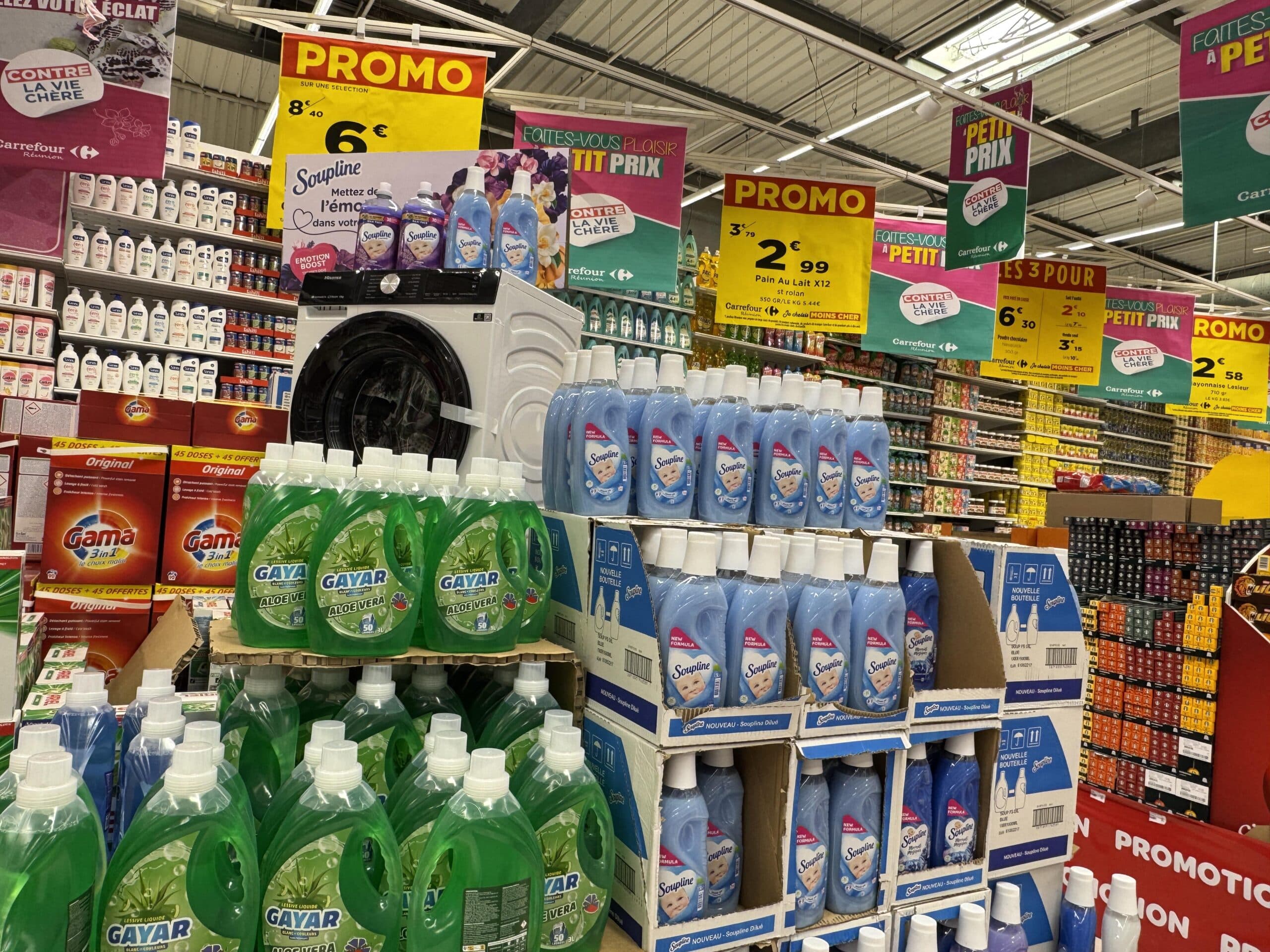 Je commence à avoir suffisamment vu de Carrefour “GBH” (du nom du franchisé Bernard Hayot) dans les différents départements et territoires d’outre-mer pour l’affirmer : le mural de produits à 5 mètres est un dogme. Et, de fait, une signature des hypers du groupe. Sans surprise… j’adore ! Parce que la marchandise (en mural ou en massification, parce que c’est en fait une culture) est encore la raison d’être d’un hyper. Alors GBH y va franco ! Exemple ce matin à Sainte-Suzanne (La Réunion).